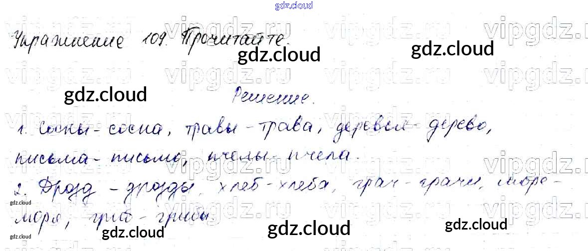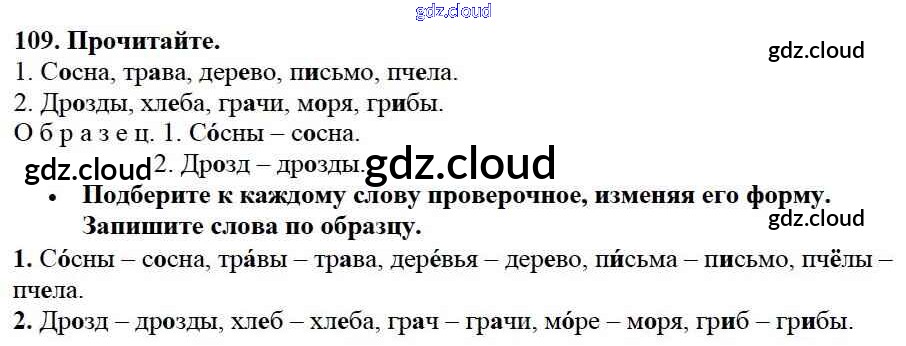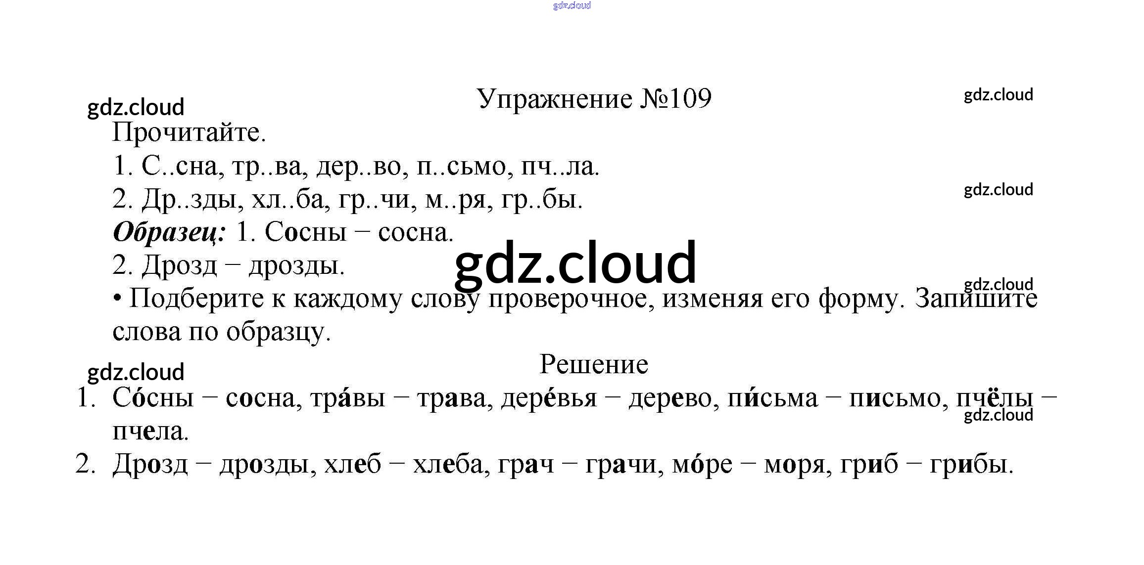 Ответ на задание упр.109 Учебник Русский язык за 2 (второй) класс Канакина, Горецкий Школа России 2013 Часть 1, 2