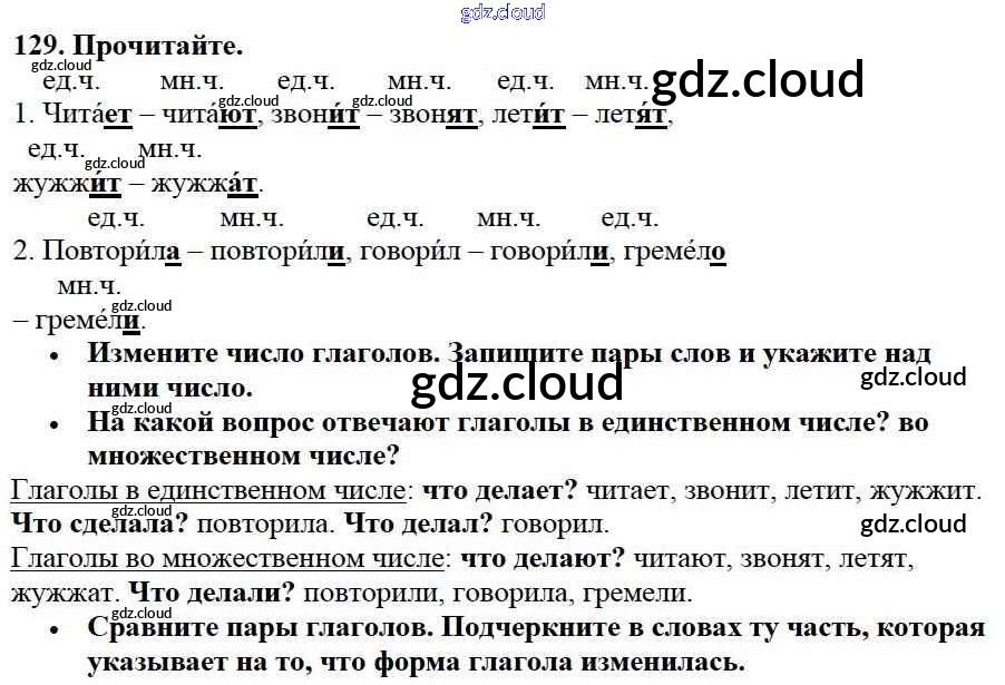 Ответ на задание упр.129 Учебник Русский язык за 2 (второй) класс Канакина, Горецкий Школа России 2013 Часть 1, 2