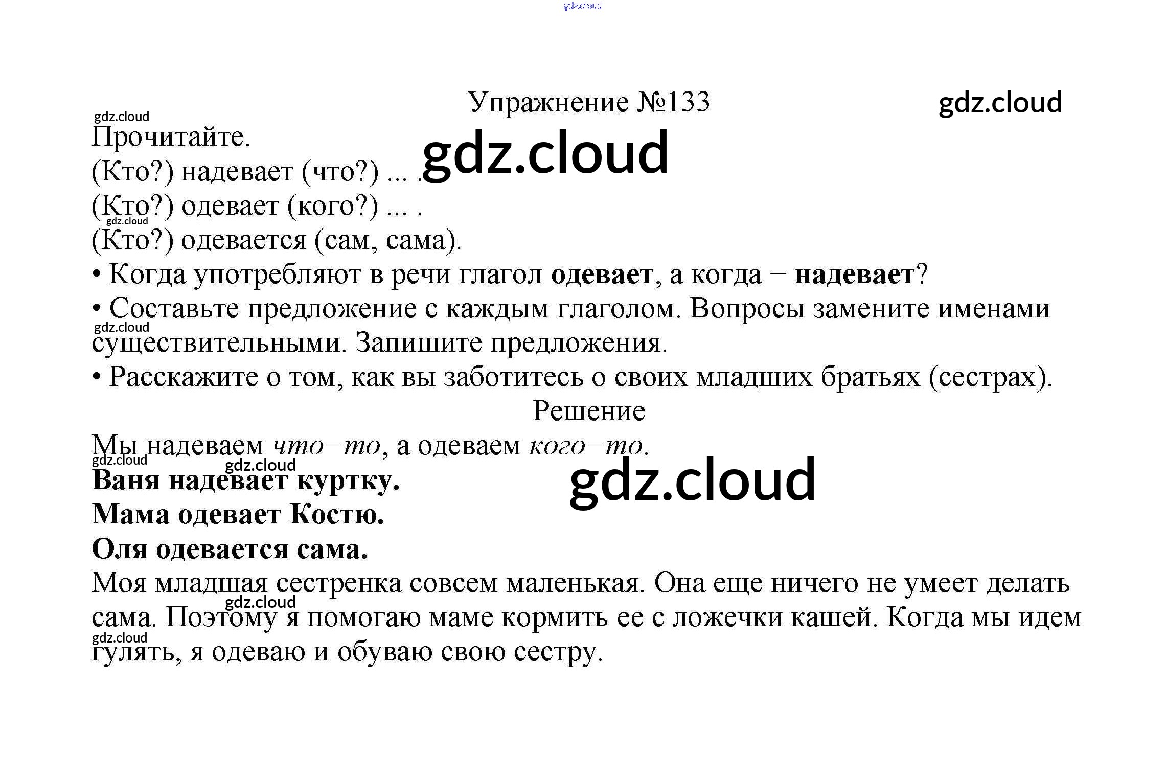 Ответ на задание упр.133 Учебник Русский язык за 2 (второй) класс Канакина, Горецкий Школа России 2013 Часть 1, 2