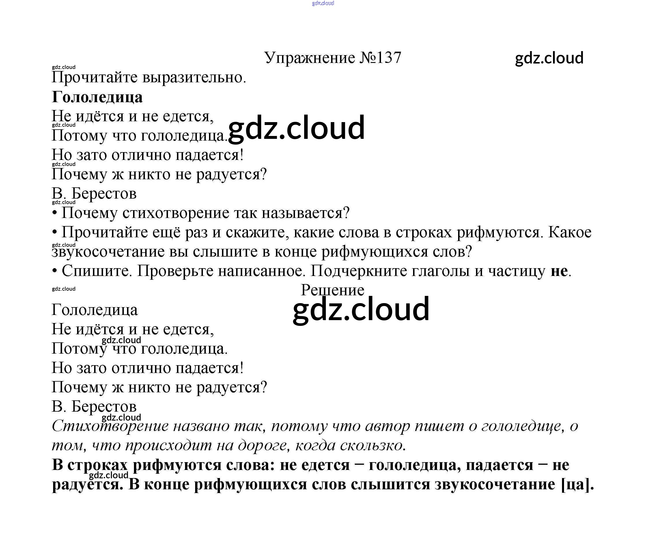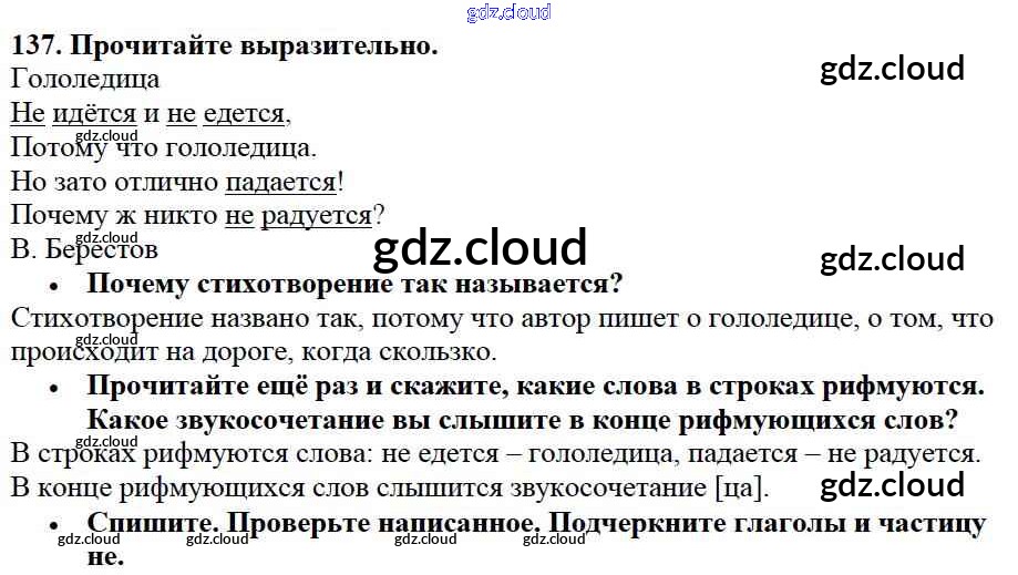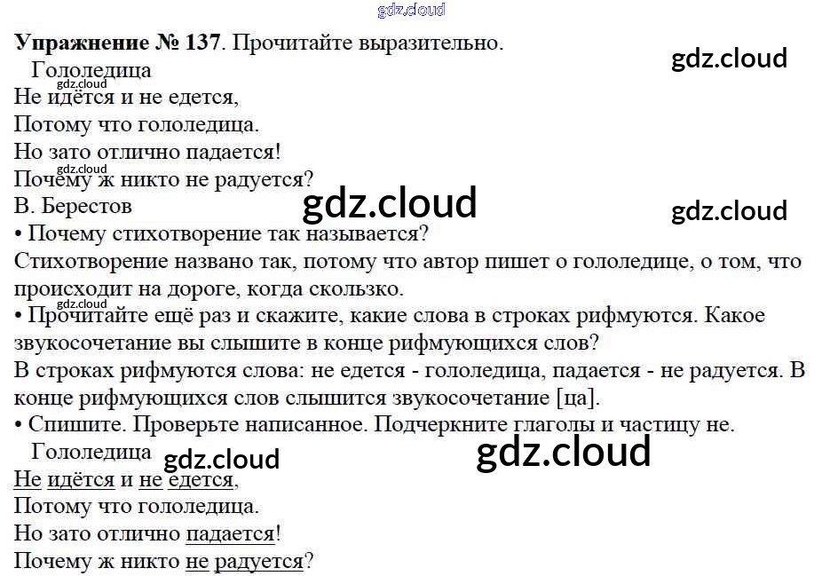 Ответ на задание упр.137 Учебник Русский язык за 2 (второй) класс Канакина, Горецкий Школа России 2013 Часть 1, 2
