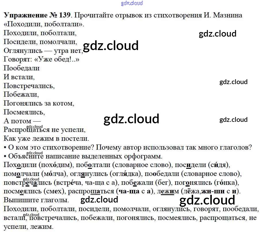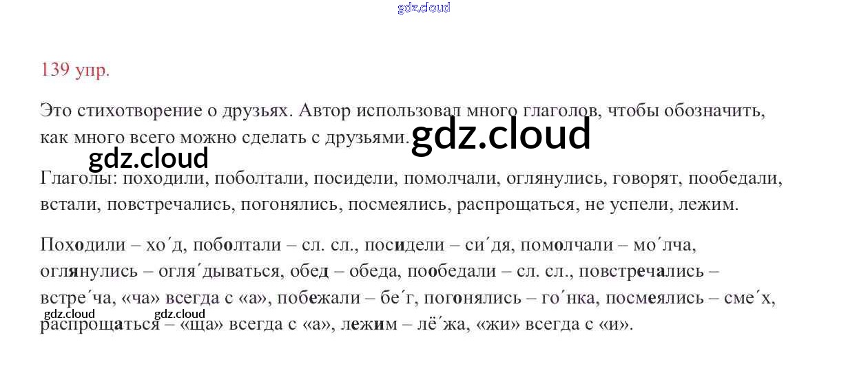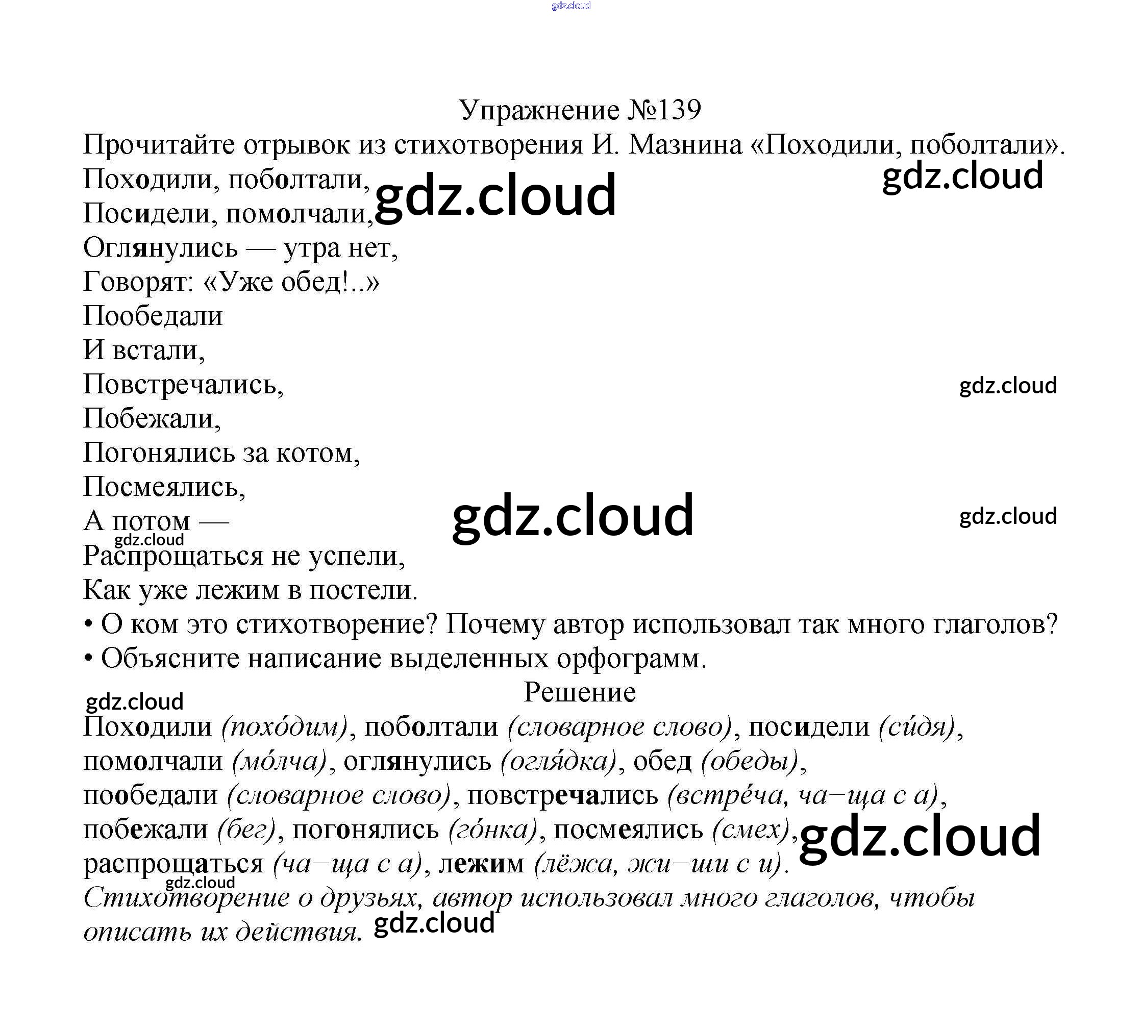 Ответ на задание упр.139 Учебник Русский язык за 2 (второй) класс Канакина, Горецкий Школа России 2013 Часть 1, 2