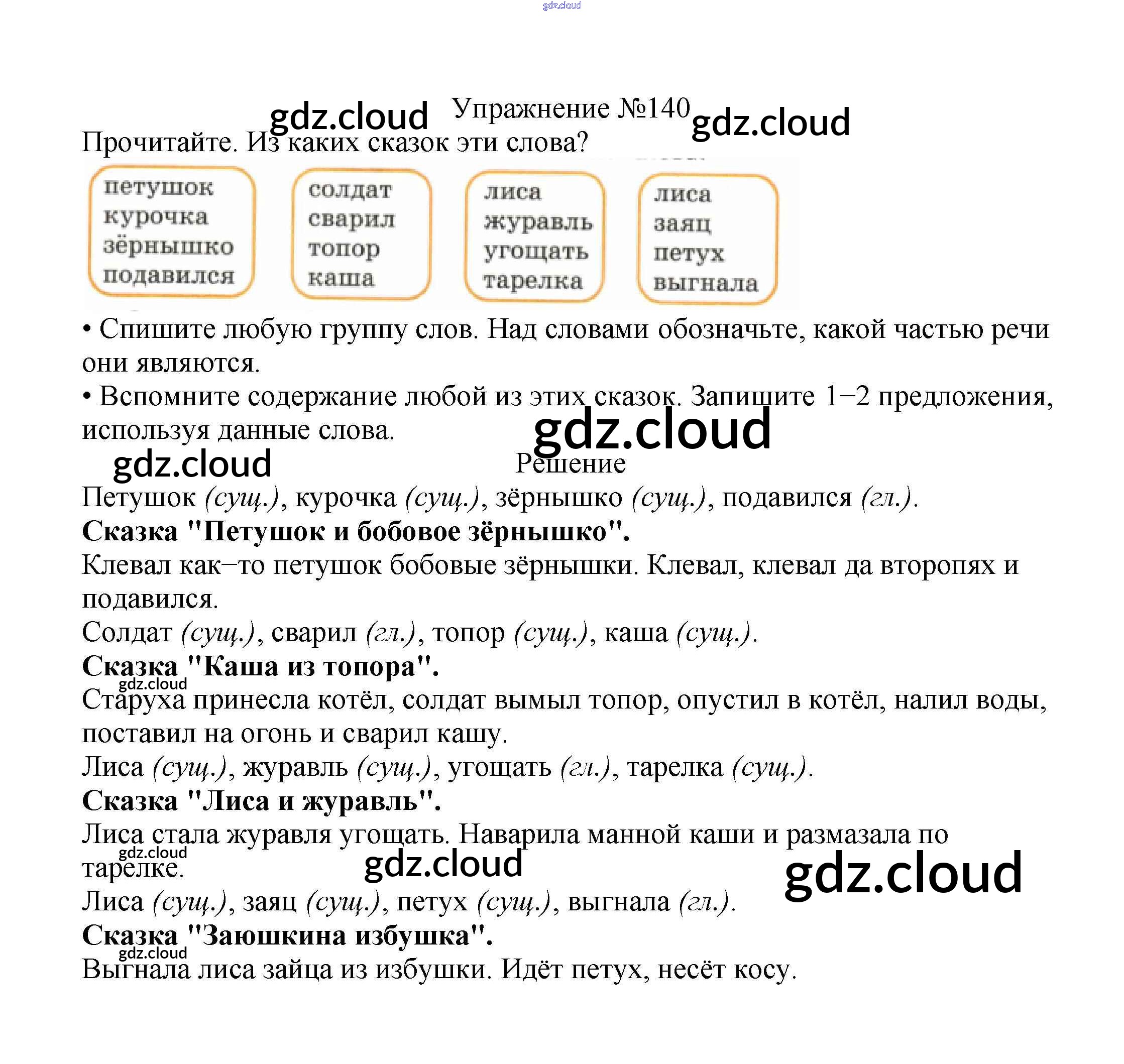 Ответ на задание упр.140 Учебник Русский язык за 2 (второй) класс Канакина, Горецкий Школа России 2013 Часть 1, 2