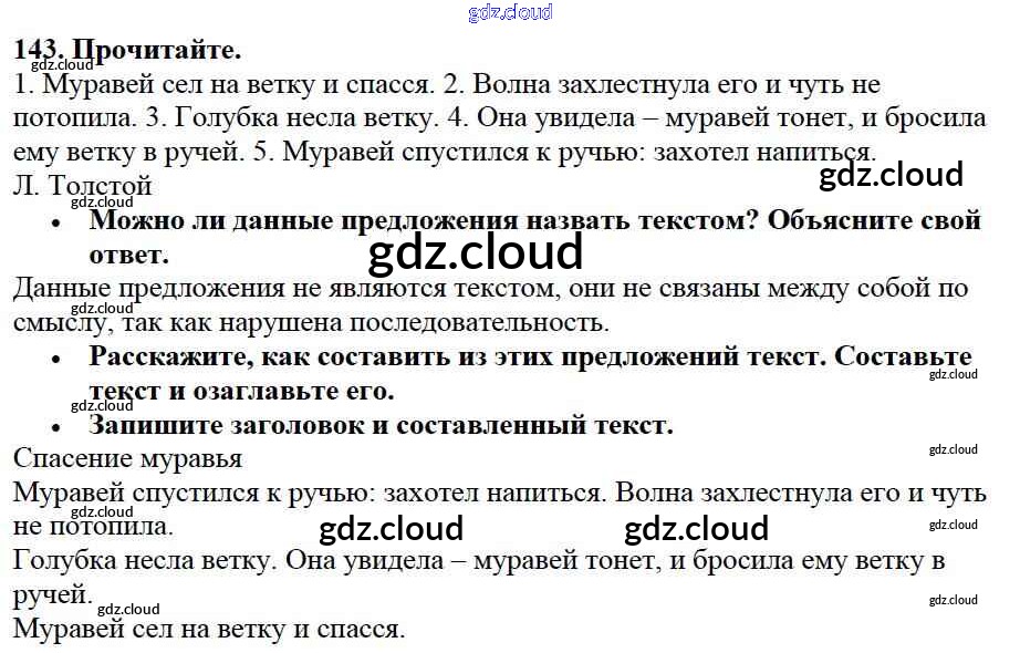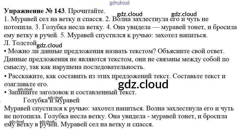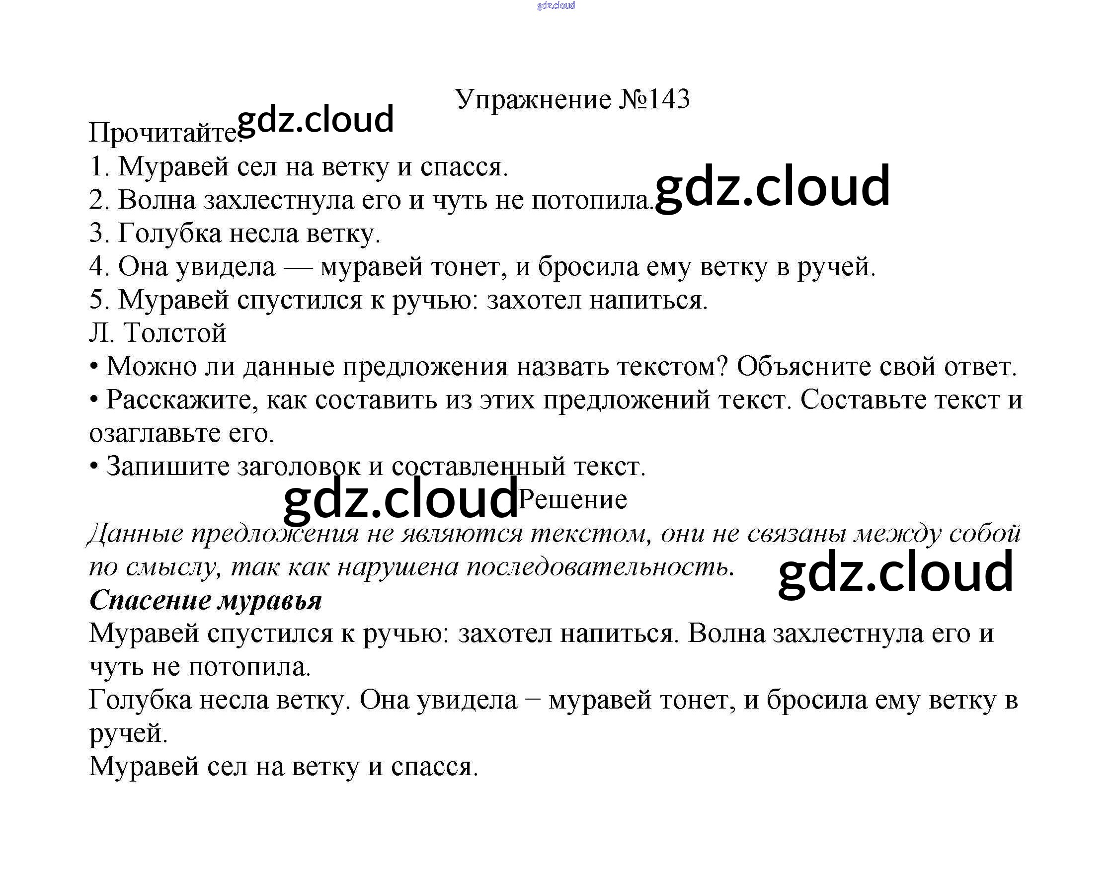 Ответ на задание упр.143 Учебник Русский язык за 2 (второй) класс Канакина, Горецкий Школа России 2013 Часть 1, 2