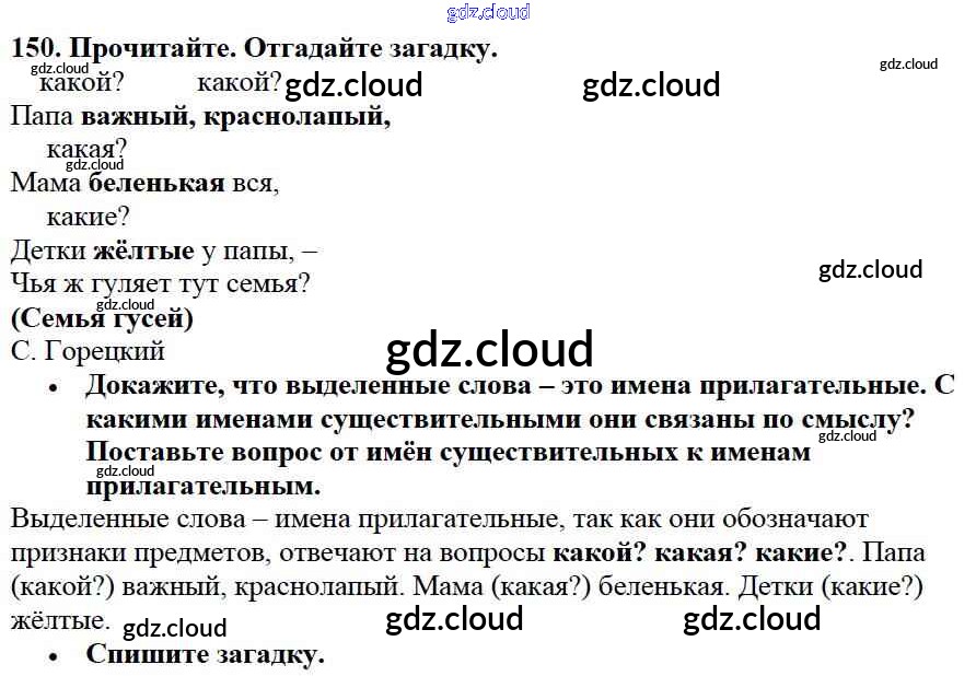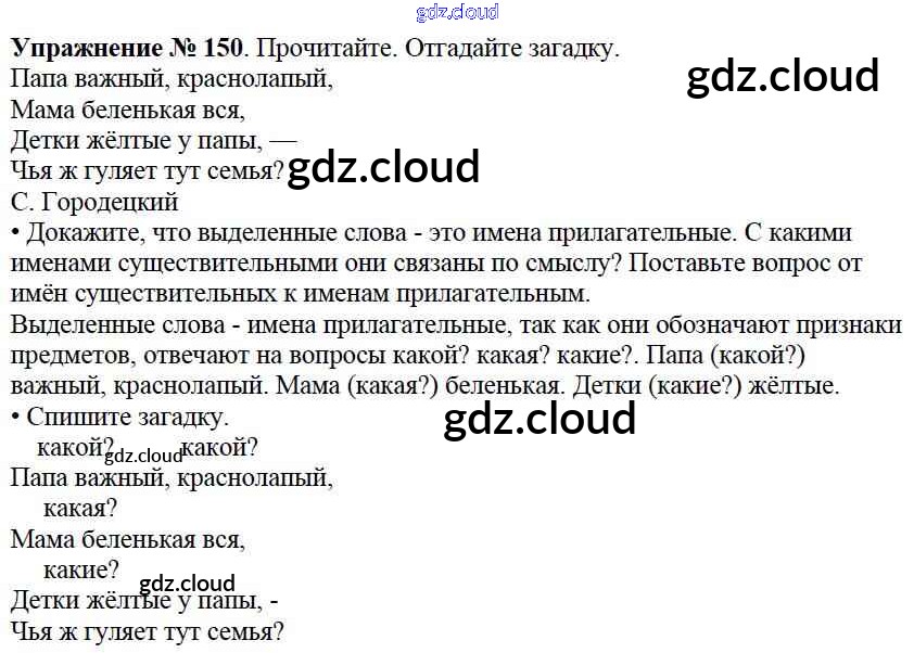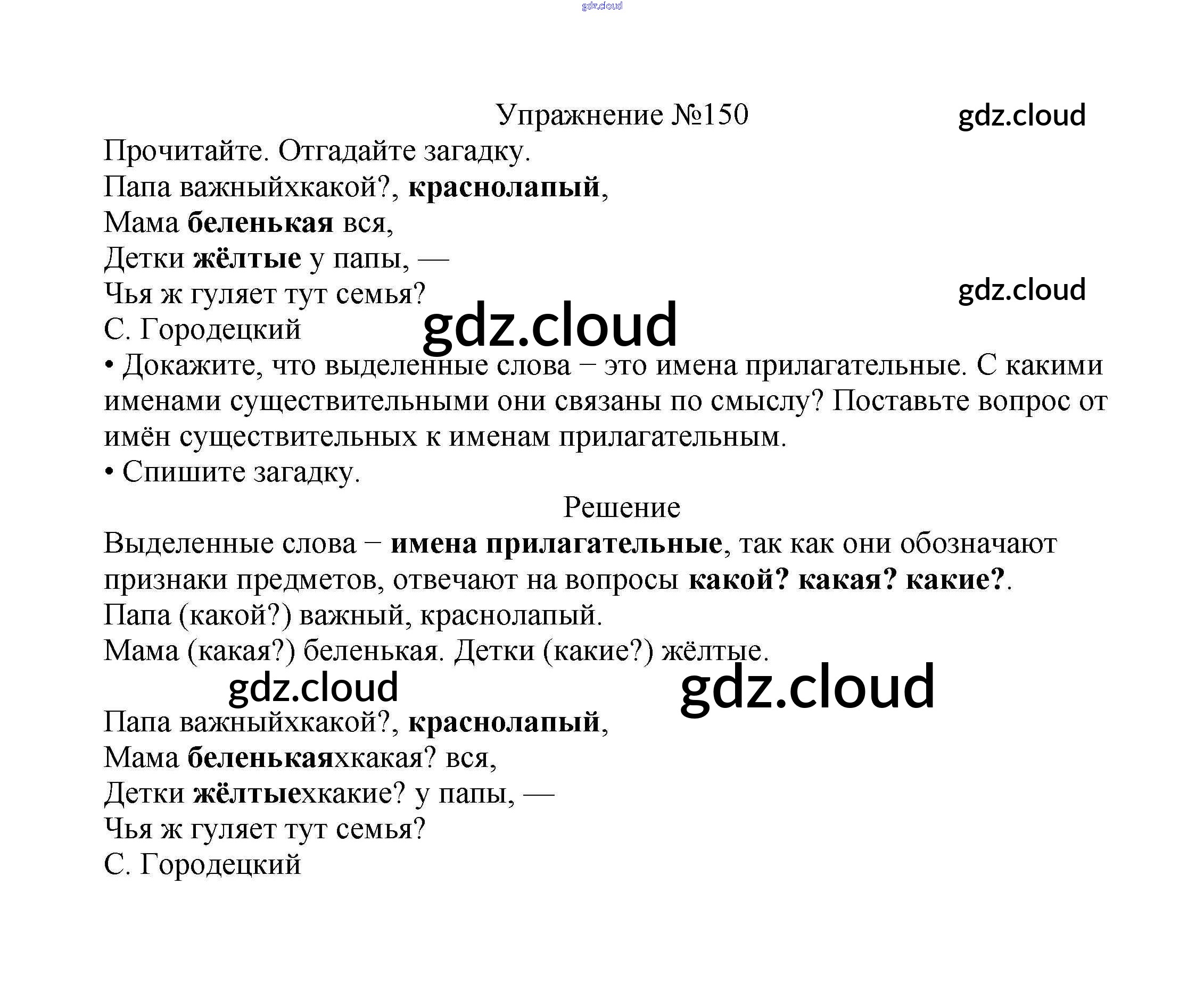 Ответ на задание упр.150 Учебник Русский язык за 2 (второй) класс Канакина, Горецкий Школа России 2013 Часть 1, 2
