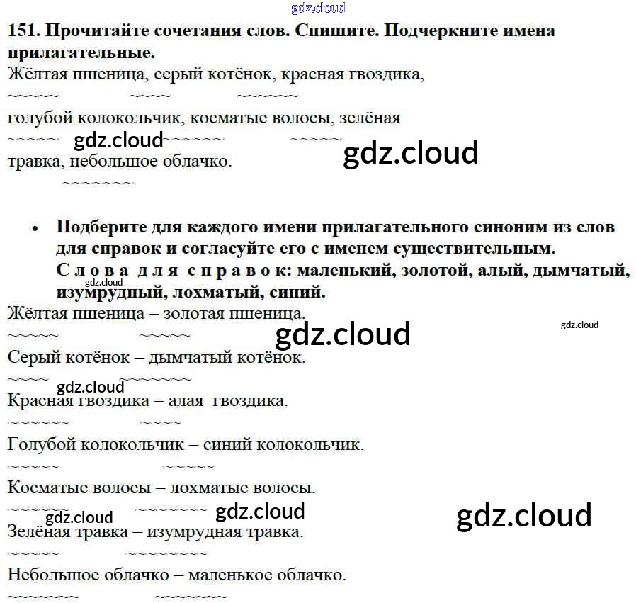 Ответ на задание упр.151 Учебник Русский язык за 2 (второй) класс Канакина, Горецкий Школа России 2013 Часть 1, 2