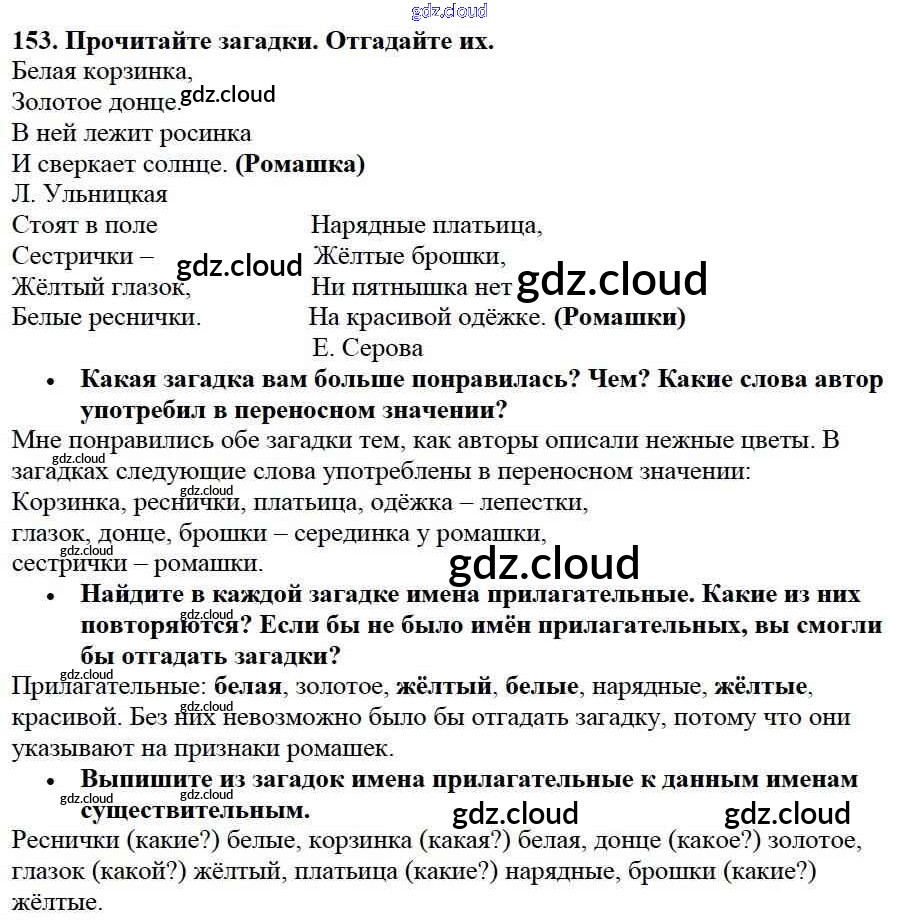 Ответ на задание упр.153 Учебник Русский язык за 2 (второй) класс Канакина, Горецкий Школа России 2013 Часть 1, 2