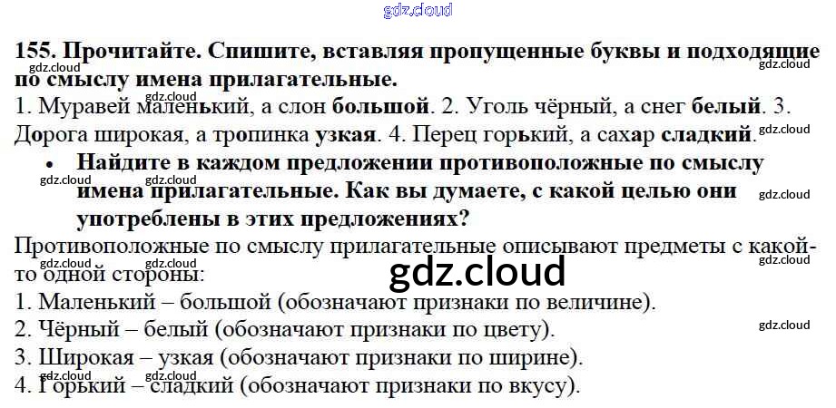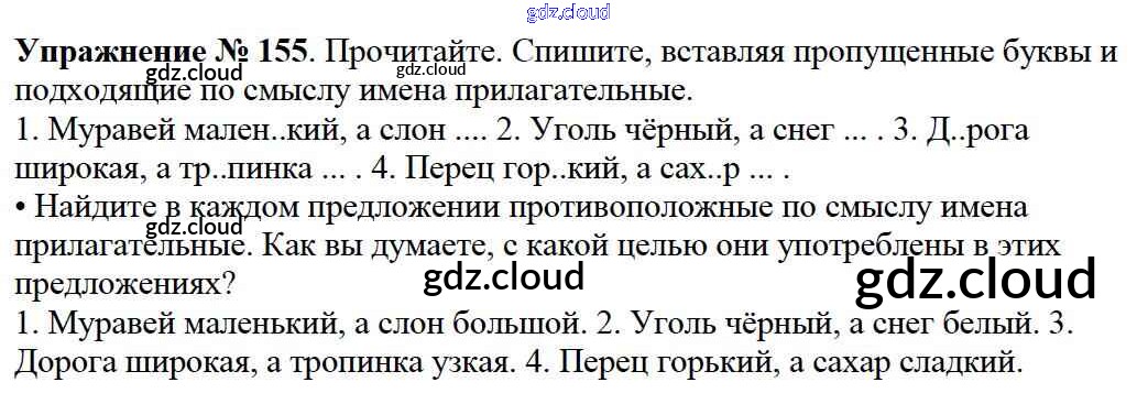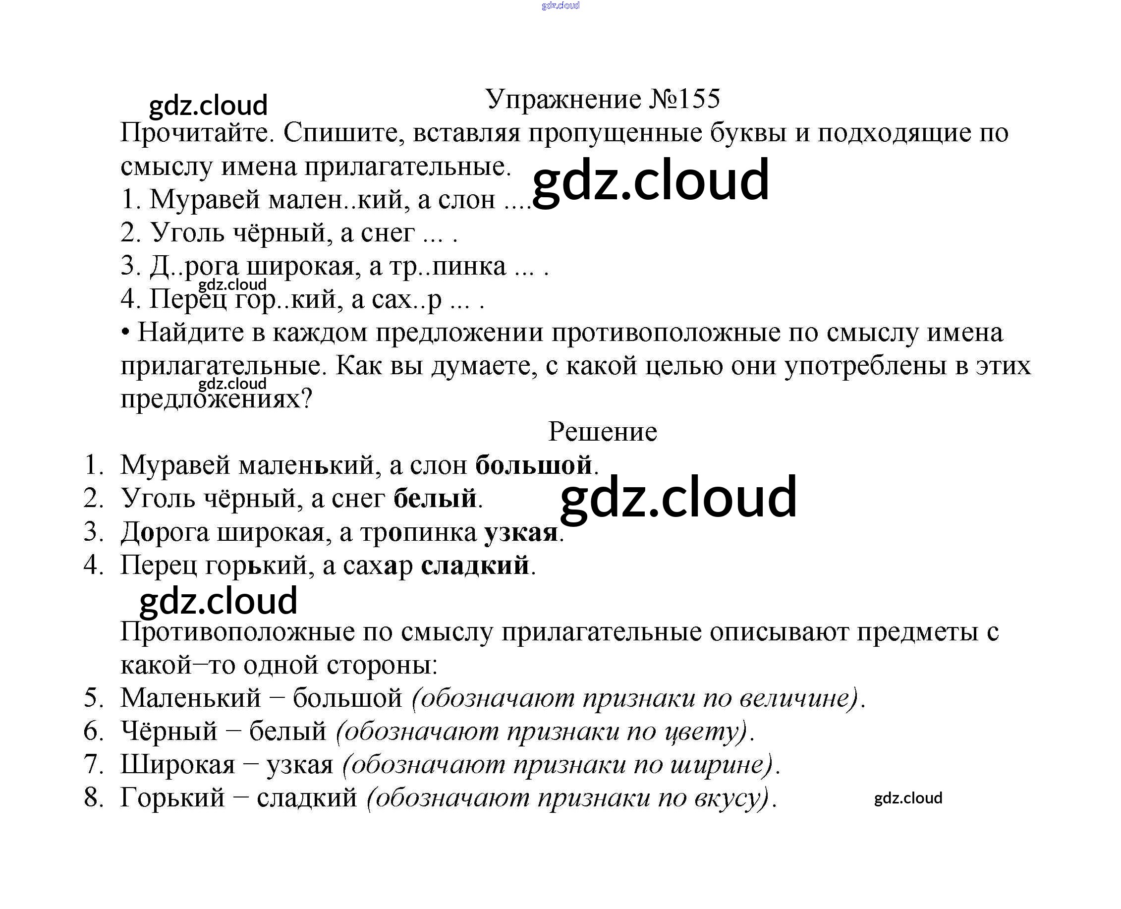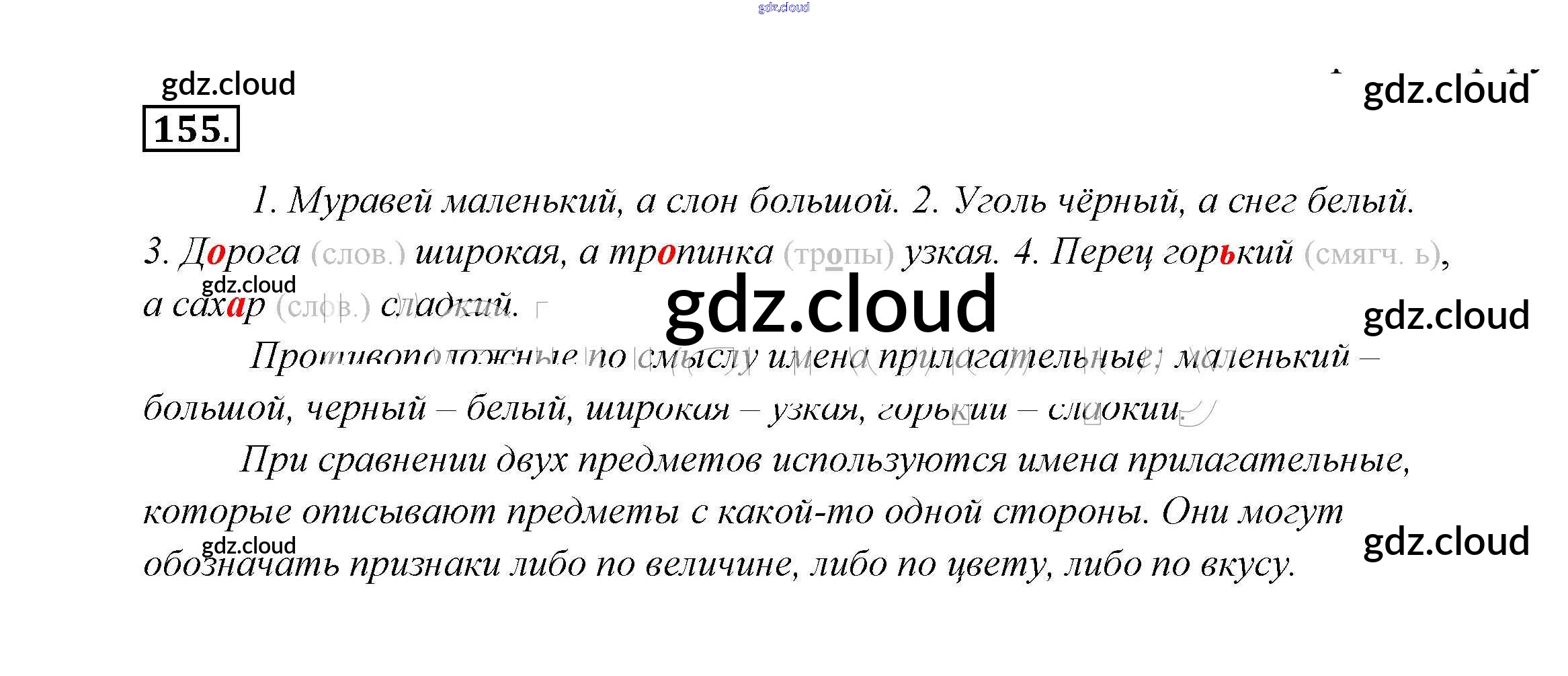 Ответ на задание упр.155 Учебник Русский язык за 2 (второй) класс Канакина, Горецкий Школа России 2013 Часть 1, 2