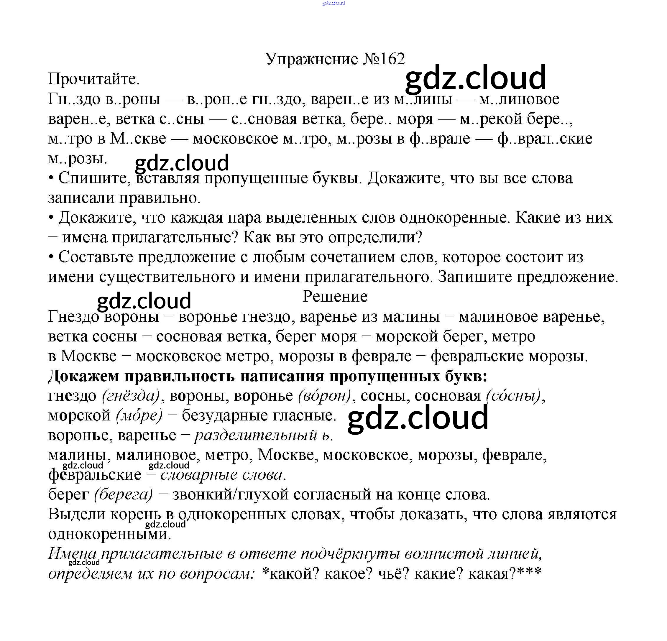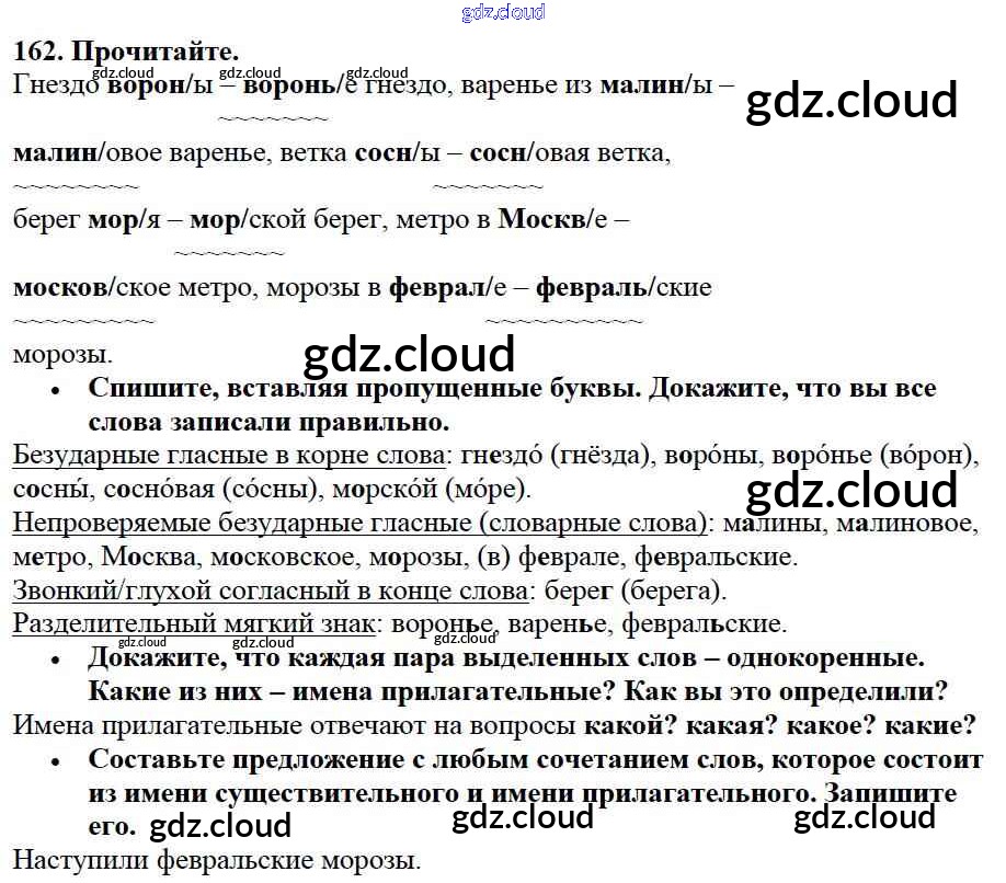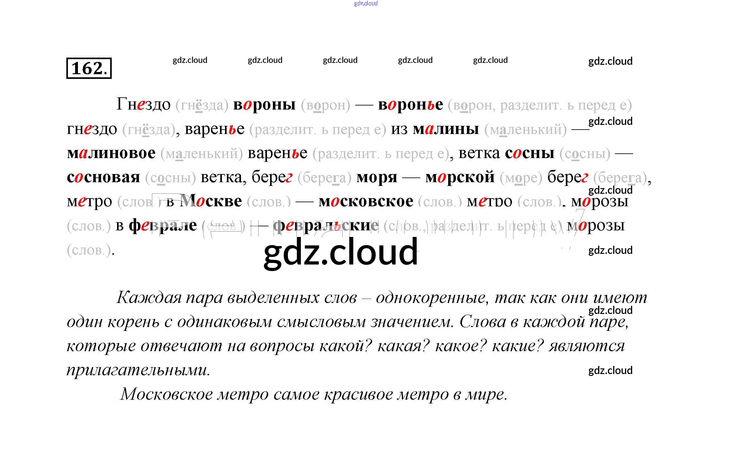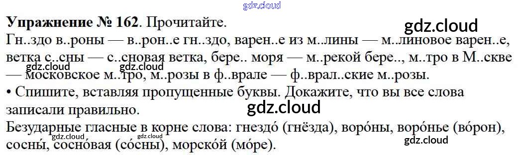 Ответ на задание упр.162 Учебник Русский язык за 2 (второй) класс Канакина, Горецкий Школа России 2013 Часть 1, 2