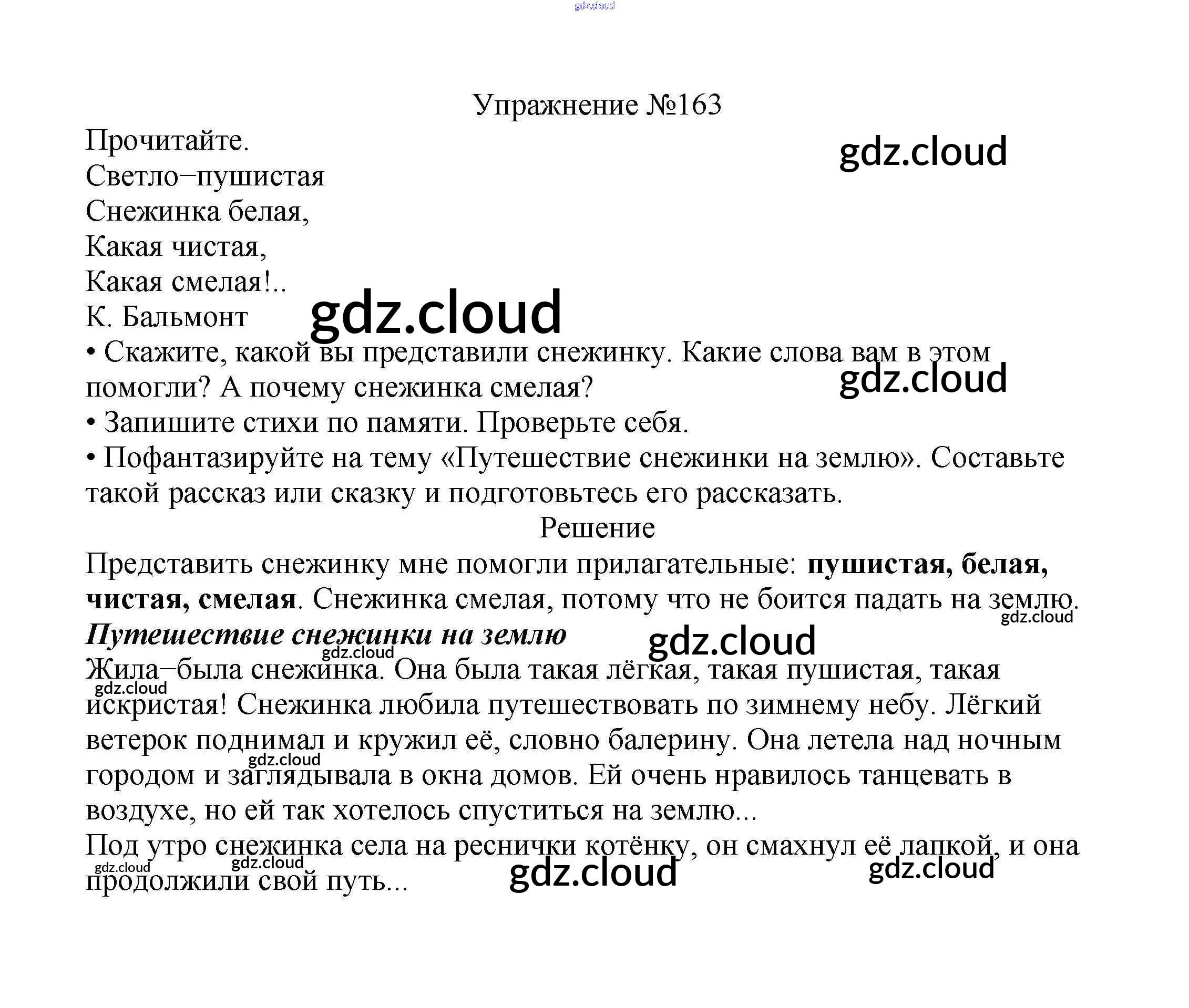 Ответ на задание упр.163 Учебник Русский язык за 2 (второй) класс Канакина, Горецкий Школа России 2013 Часть 1, 2