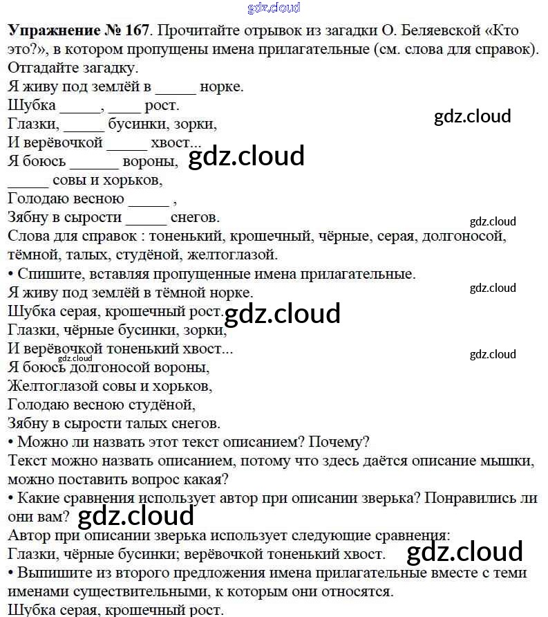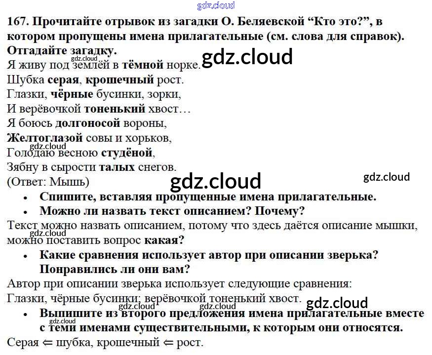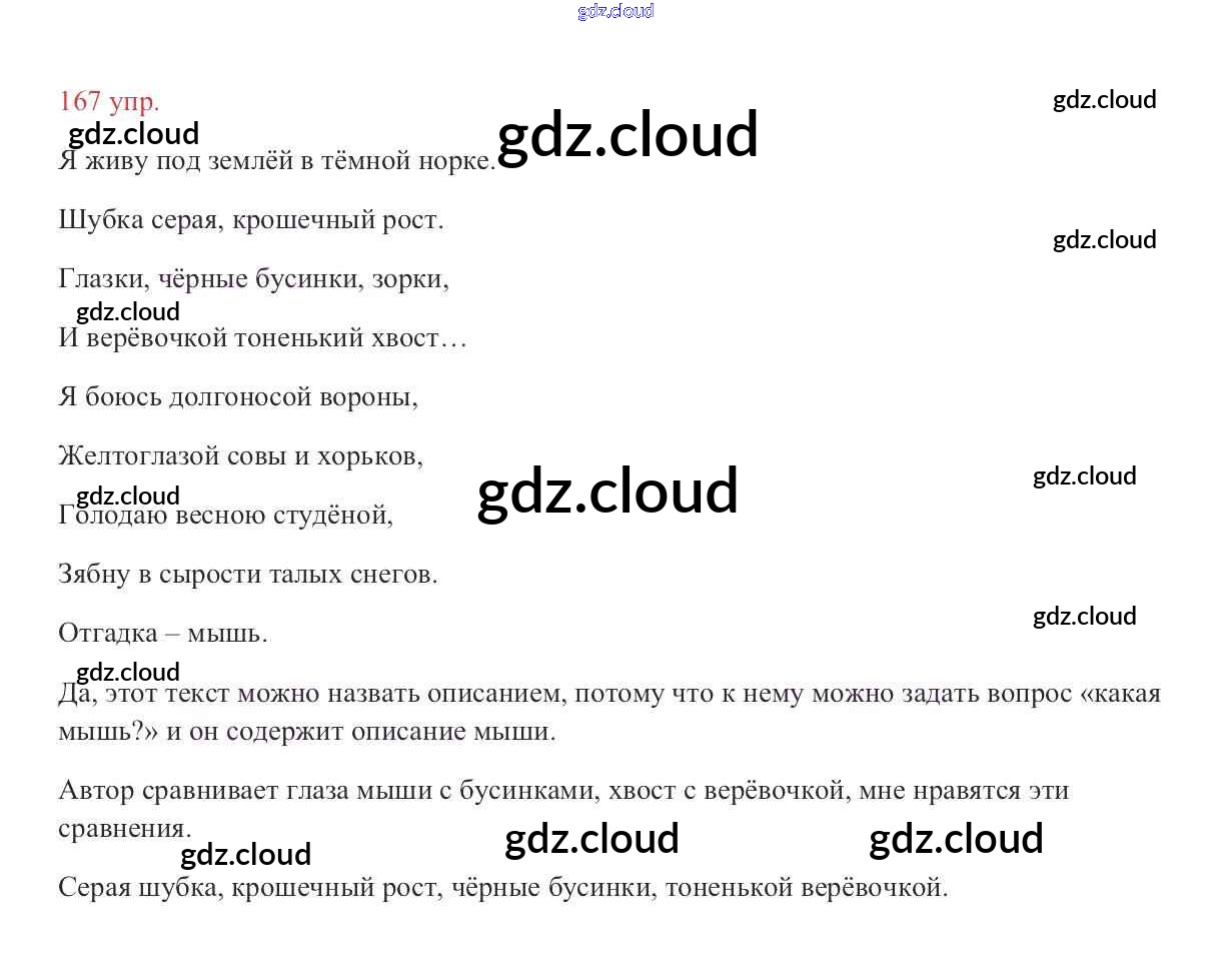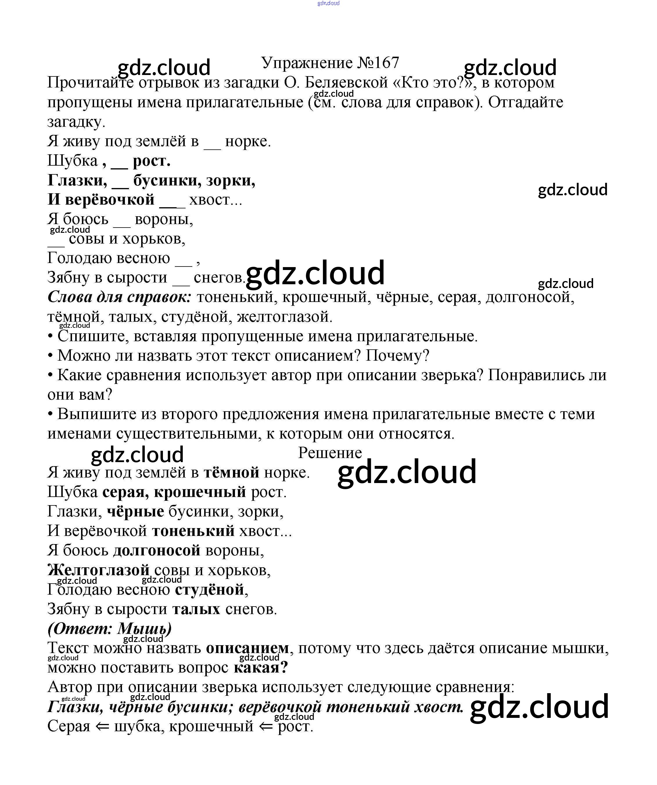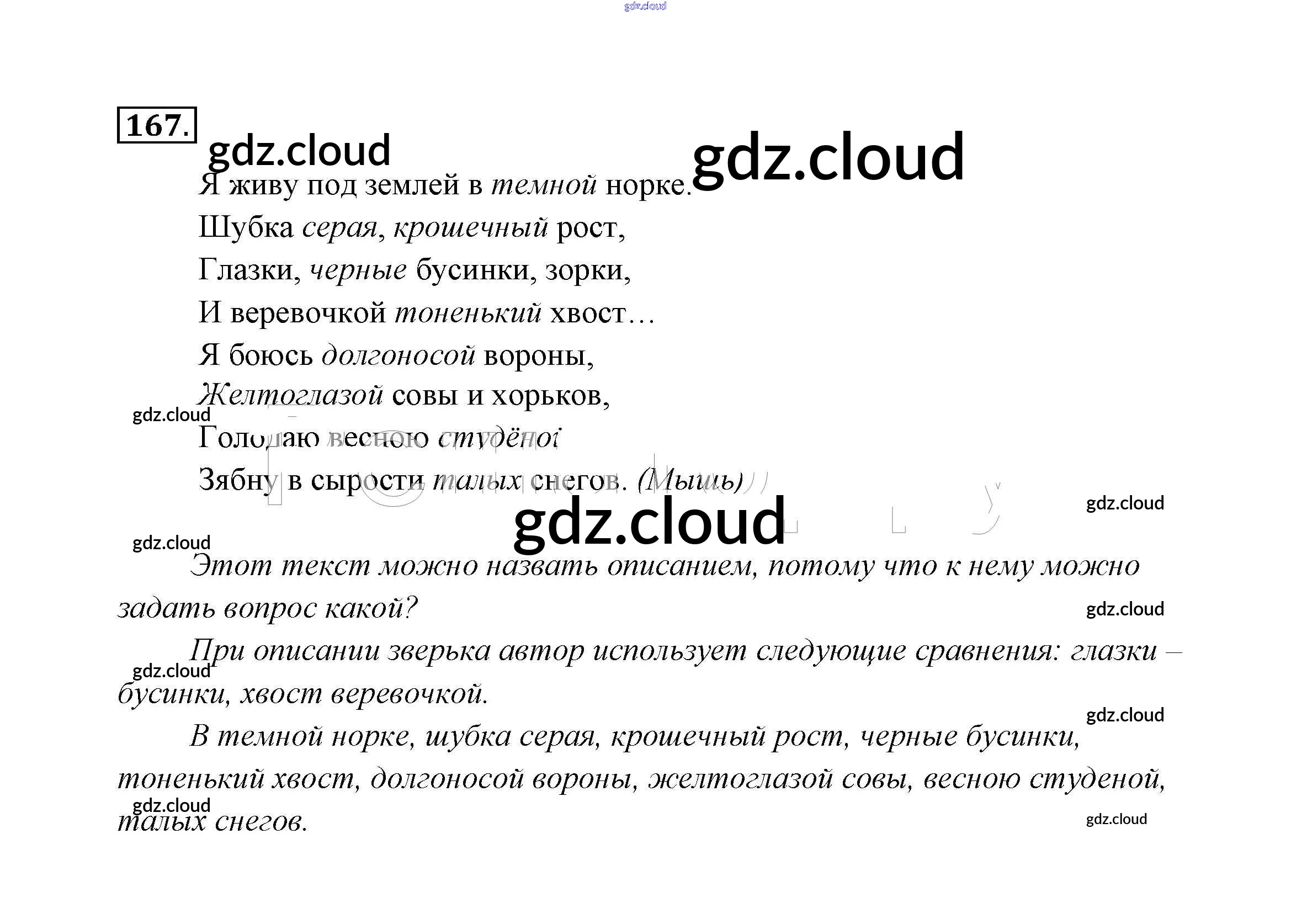 Ответ на задание упр.167 Учебник Русский язык за 2 (второй) класс Канакина, Горецкий Школа России 2013 Часть 1, 2