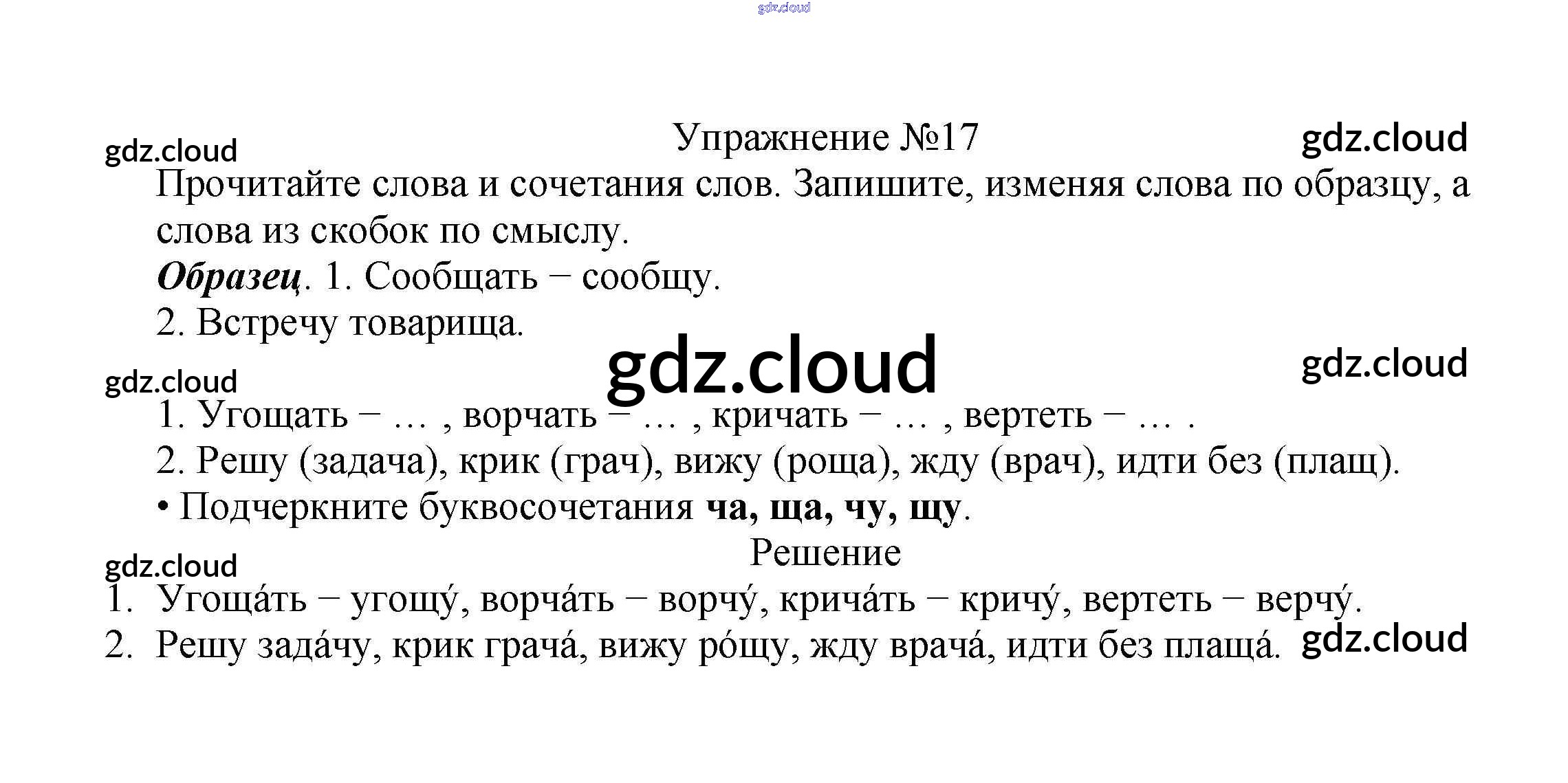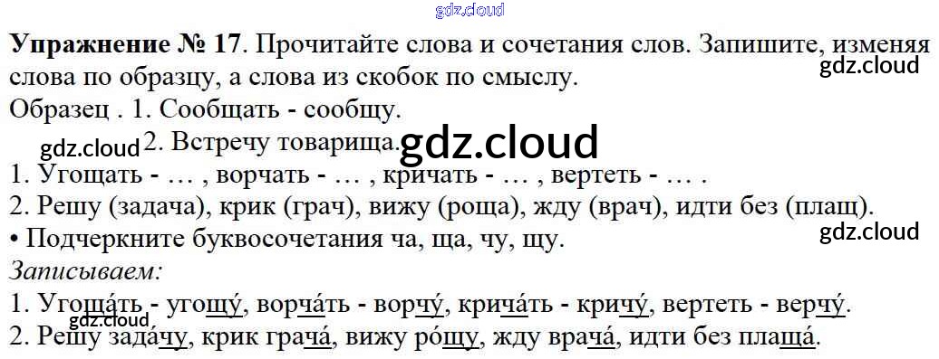 Ответ на задание упр.17 Учебник Русский язык за 2 (второй) класс Канакина, Горецкий Школа России 2013 Часть 1, 2