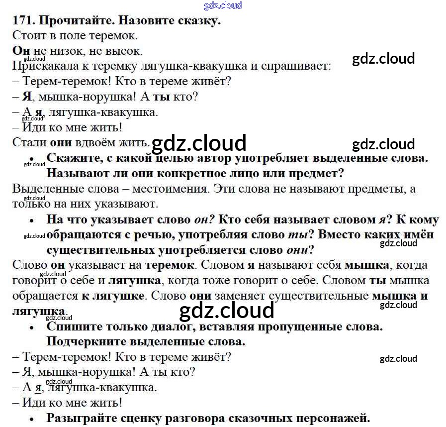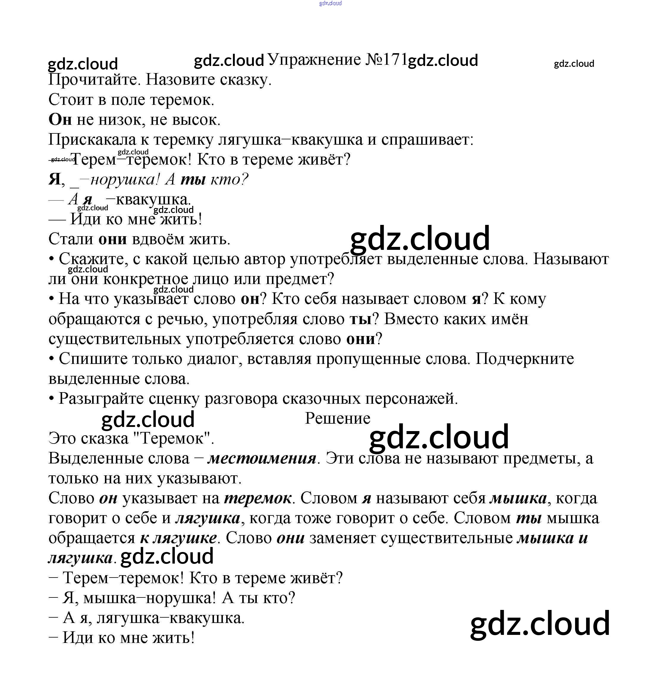 Ответ на задание упр.171 Учебник Русский язык за 2 (второй) класс Канакина, Горецкий Школа России 2013 Часть 1, 2