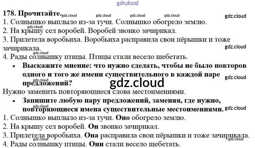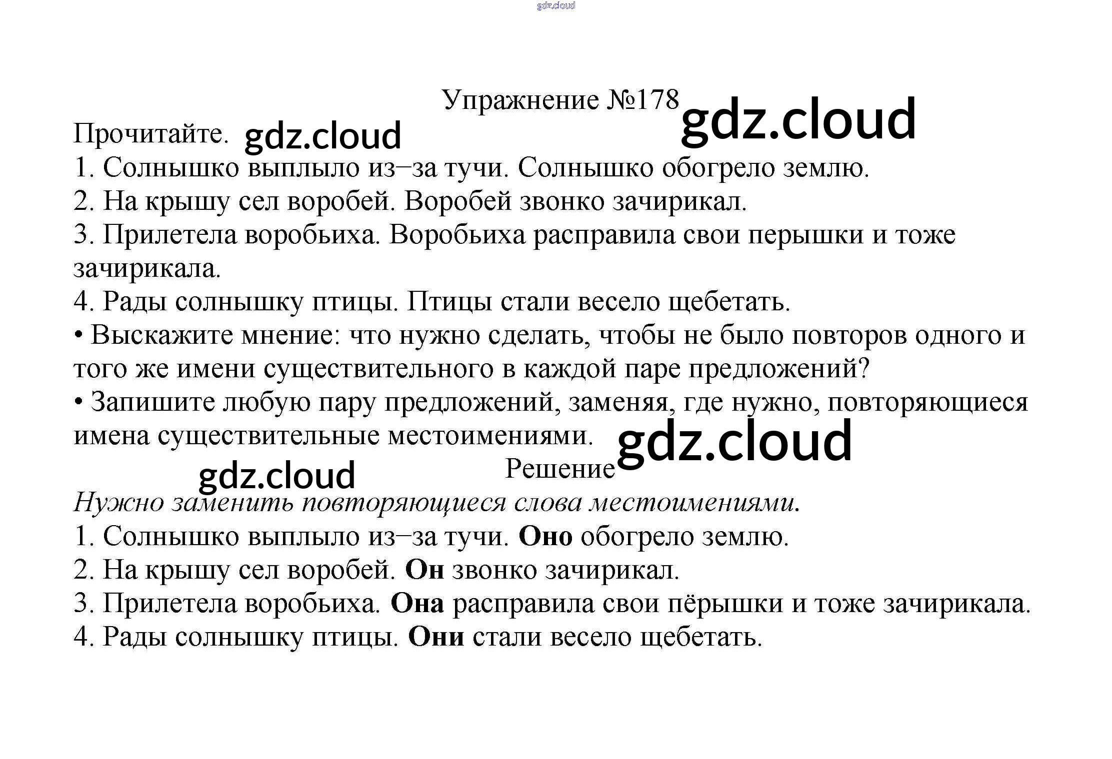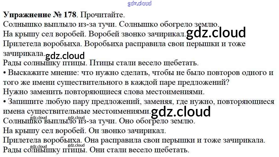Ответ на задание упр.178 Учебник Русский язык за 2 (второй) класс Канакина, Горецкий Школа России 2013 Часть 1, 2