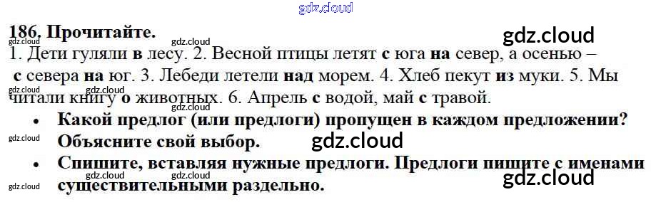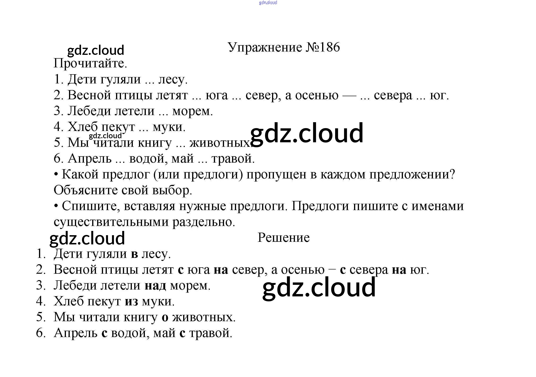 Ответ на задание упр.186 Учебник Русский язык за 2 (второй) класс Канакина, Горецкий Школа России 2013 Часть 1, 2