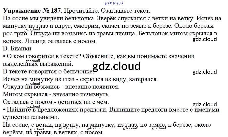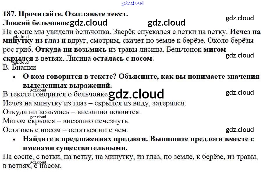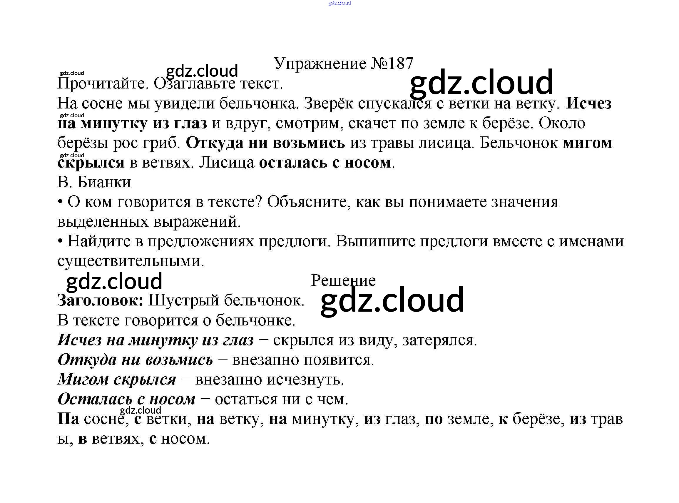 Ответ на задание упр.187 Учебник Русский язык за 2 (второй) класс Канакина, Горецкий Школа России 2013 Часть 1, 2