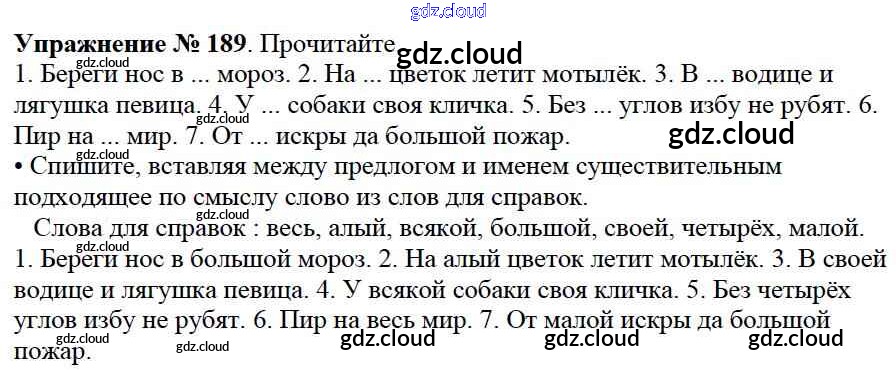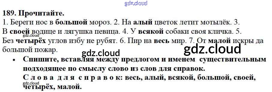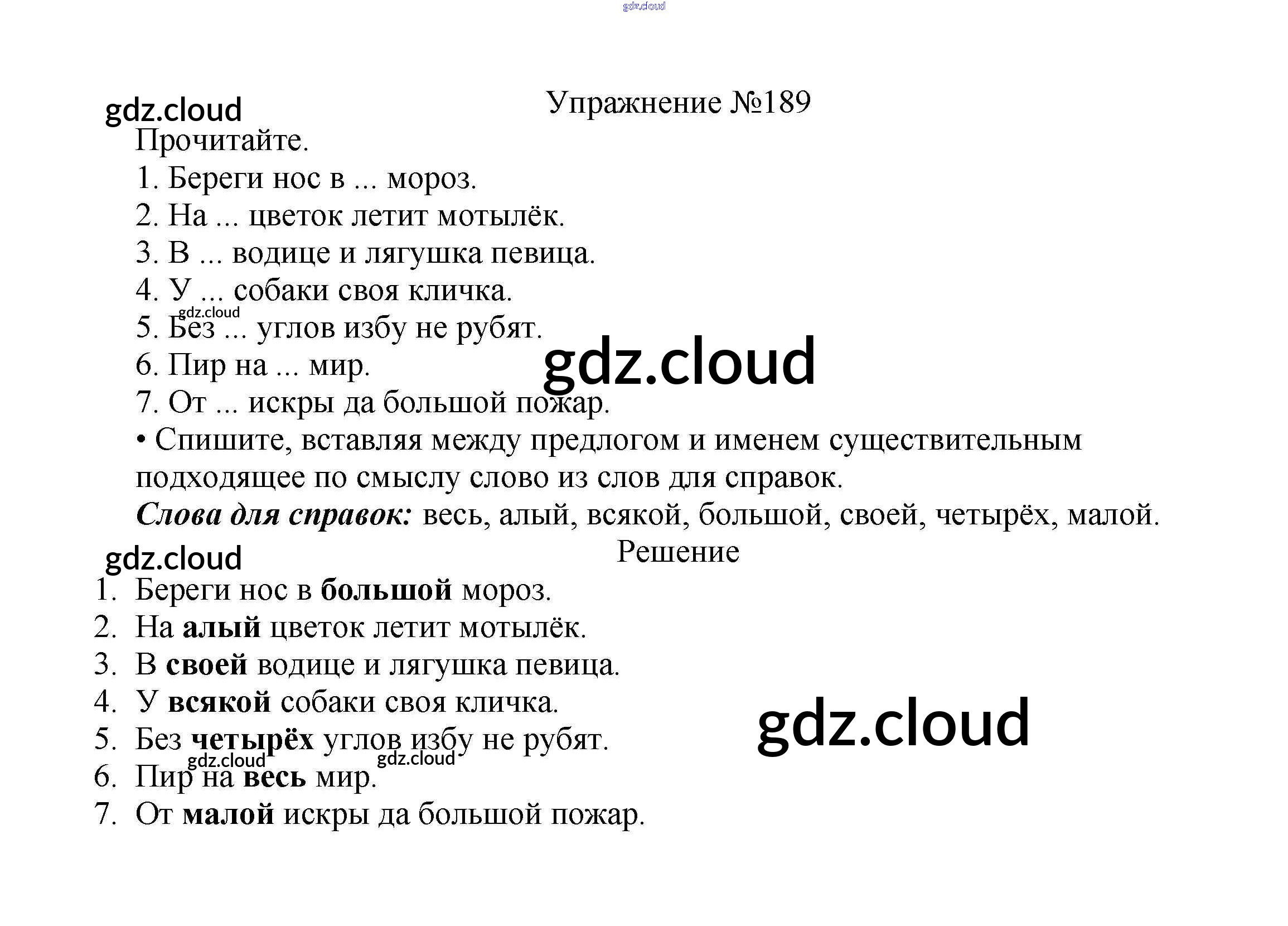 Ответ на задание упр.189 Учебник Русский язык за 2 (второй) класс Канакина, Горецкий Школа России 2013 Часть 1, 2