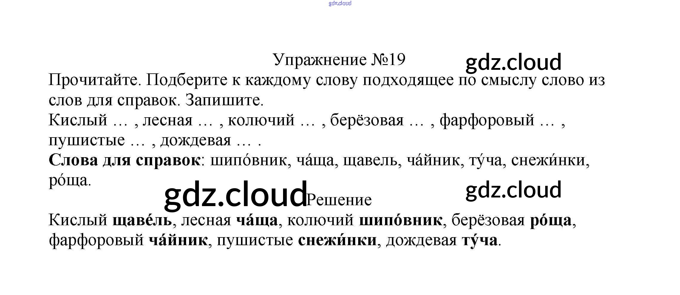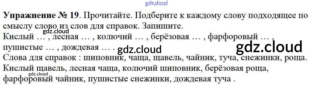 Ответ на задание упр.19 Учебник Русский язык за 2 (второй) класс Канакина, Горецкий Школа России 2013 Часть 1, 2