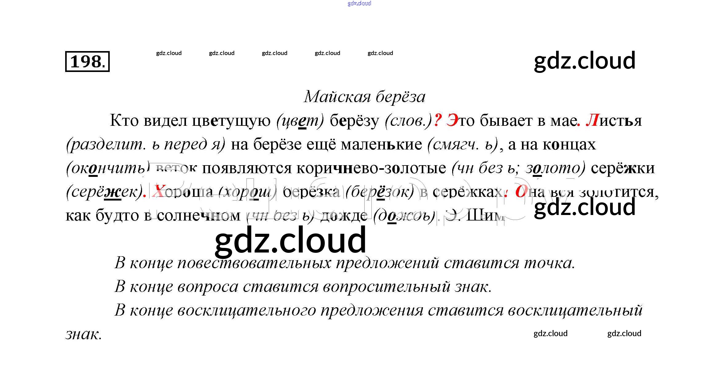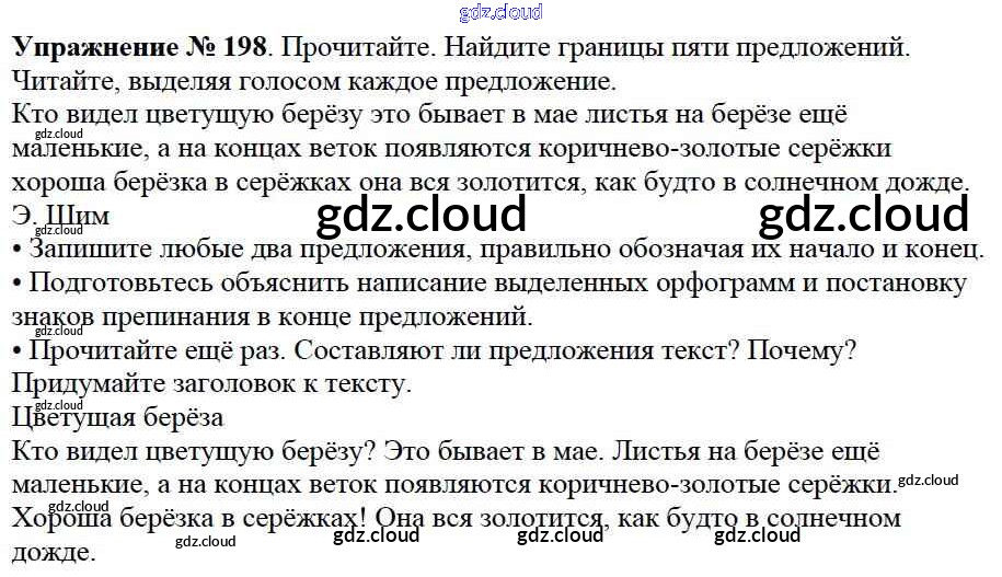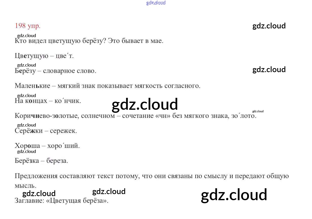 Ответ на задание упр.198 Учебник Русский язык за 2 (второй) класс Канакина, Горецкий Школа России 2013 Часть 1, 2