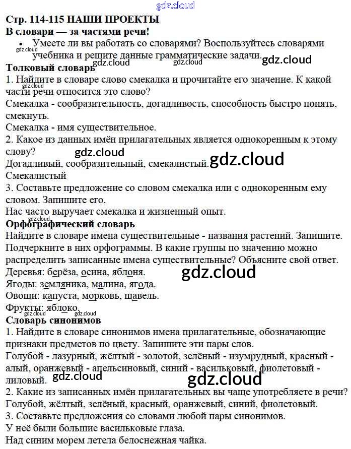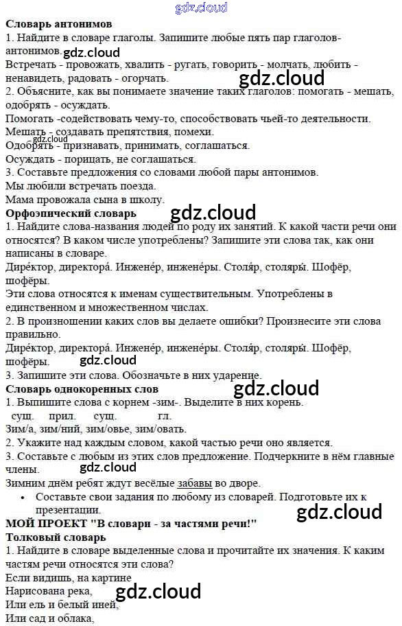 Наши проекты Ответы к части №2 по Русскому языку 2 класс Учебник Канакина Школа России Часть 1, 2 Просвещение