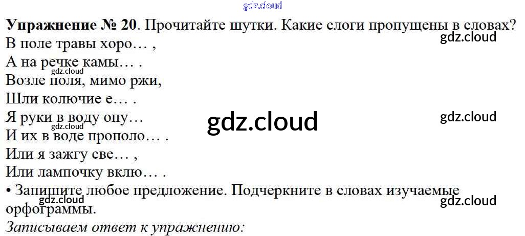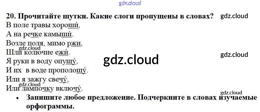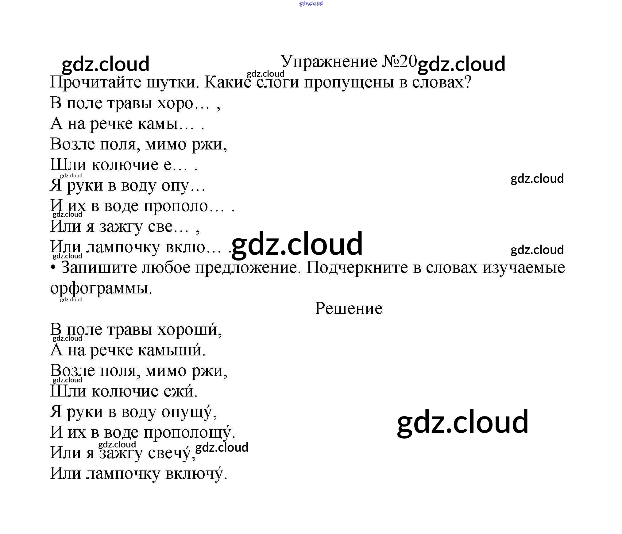 Ответ на задание упр.20 Учебник Русский язык за 2 (второй) класс Канакина, Горецкий Школа России 2013 Часть 1, 2