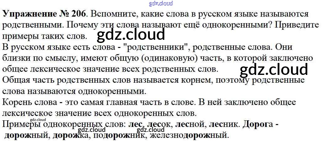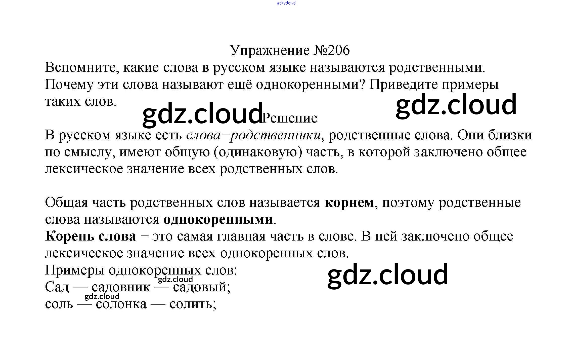 Ответ на задание упр.206 Учебник Русский язык за 2 (второй) класс Канакина, Горецкий Школа России 2013 Часть 1, 2
