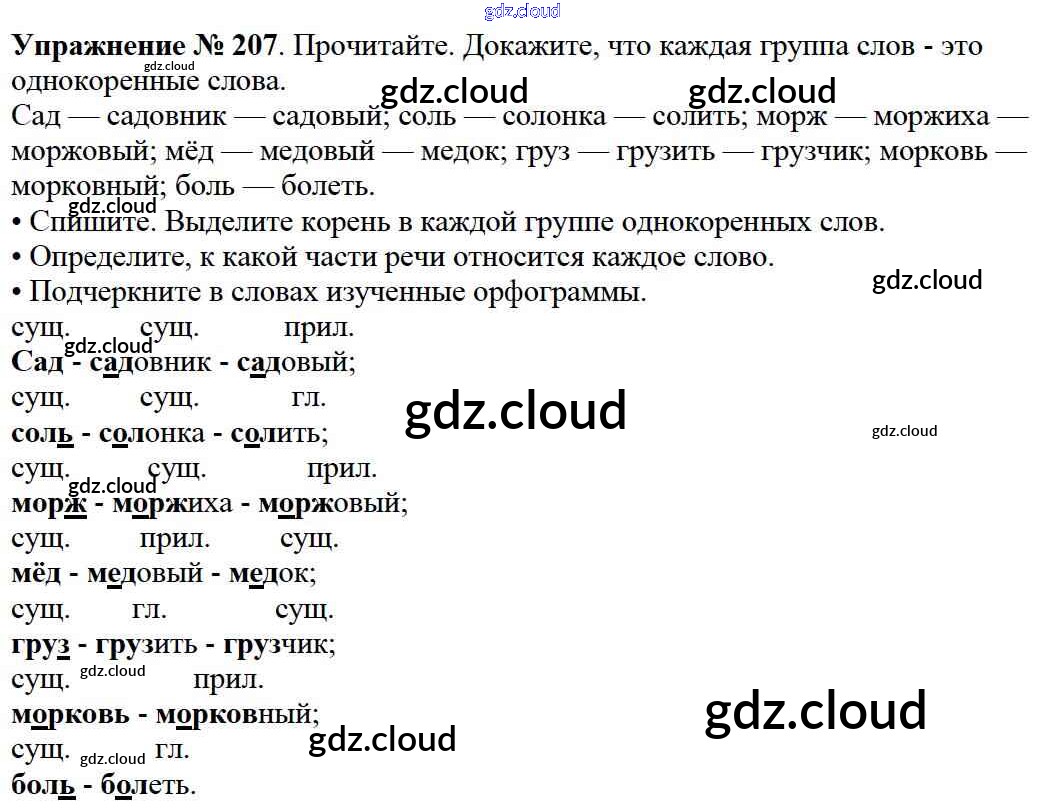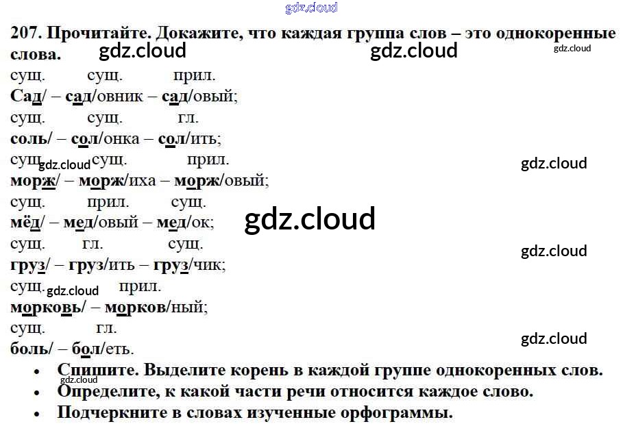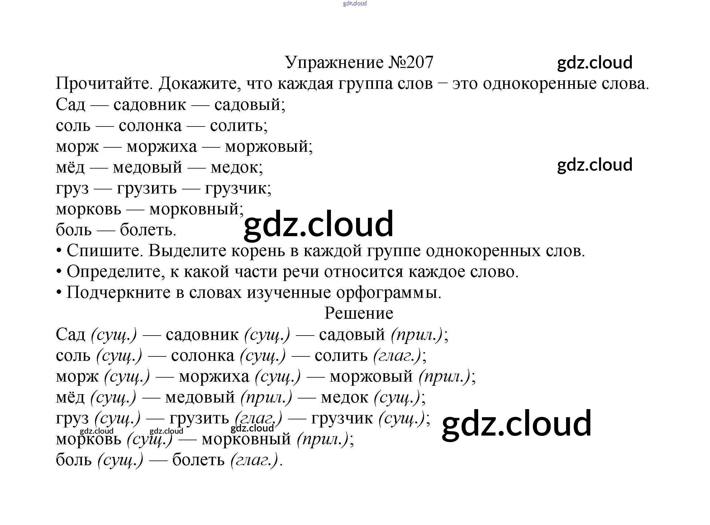Ответ на задание упр.207 Учебник Русский язык за 2 (второй) класс Канакина, Горецкий Школа России 2013 Часть 1, 2