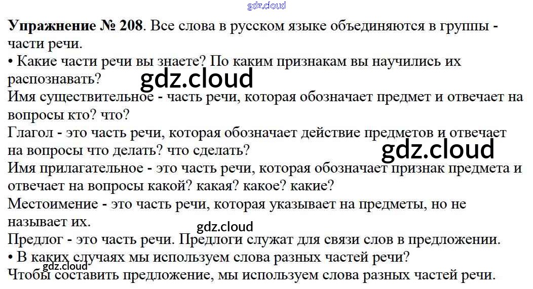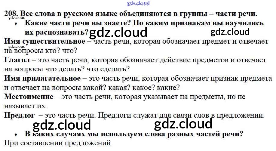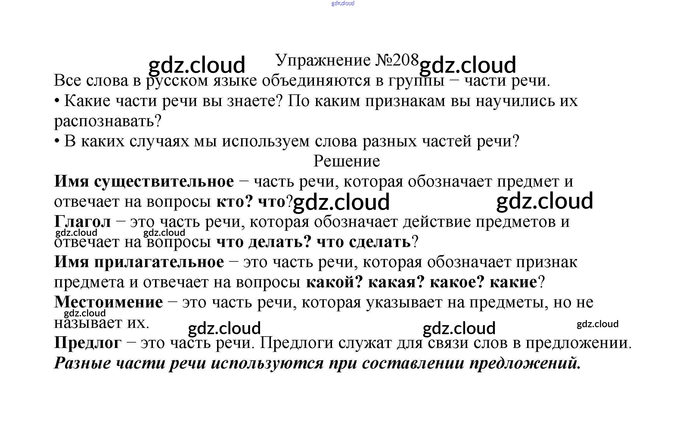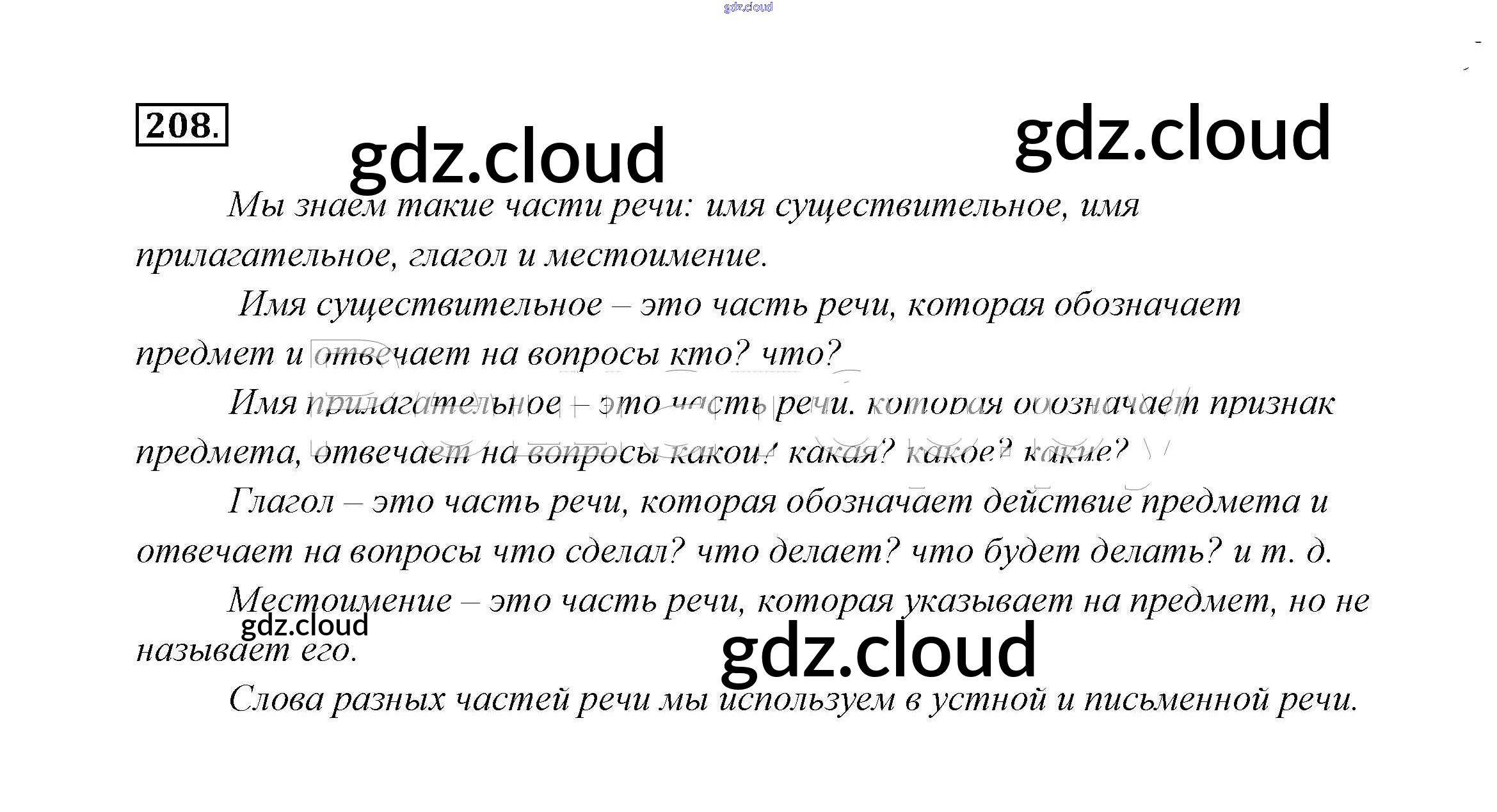 Ответ на задание упр.208 Учебник Русский язык за 2 (второй) класс Канакина, Горецкий Школа России 2013 Часть 1, 2