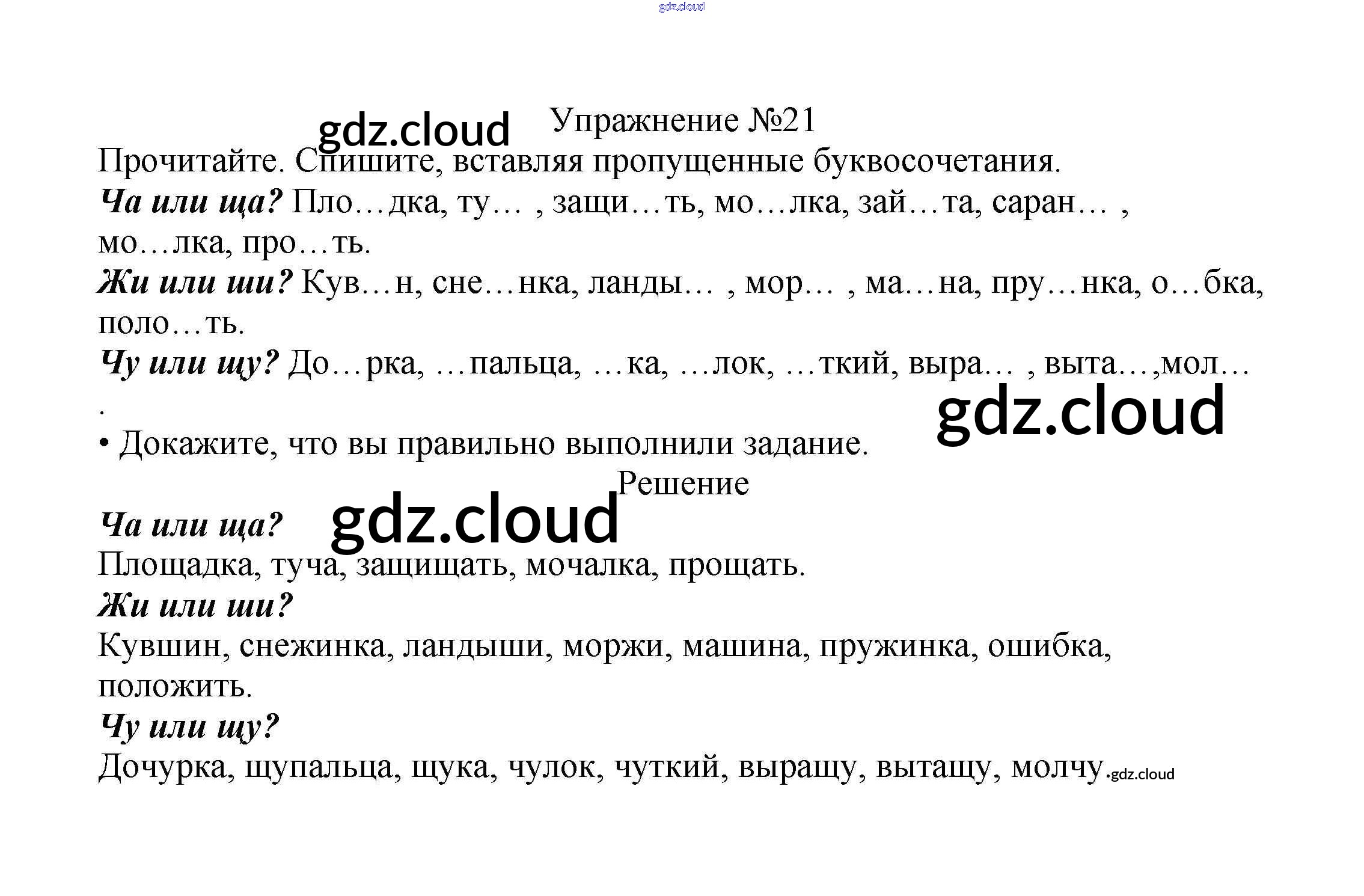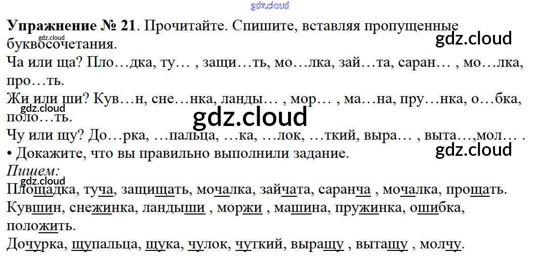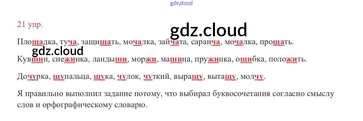 Ответ на задание упр.21 Учебник Русский язык за 2 (второй) класс Канакина, Горецкий Школа России 2013 Часть 1, 2