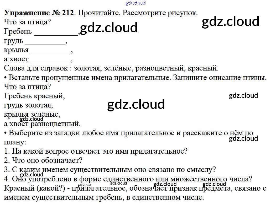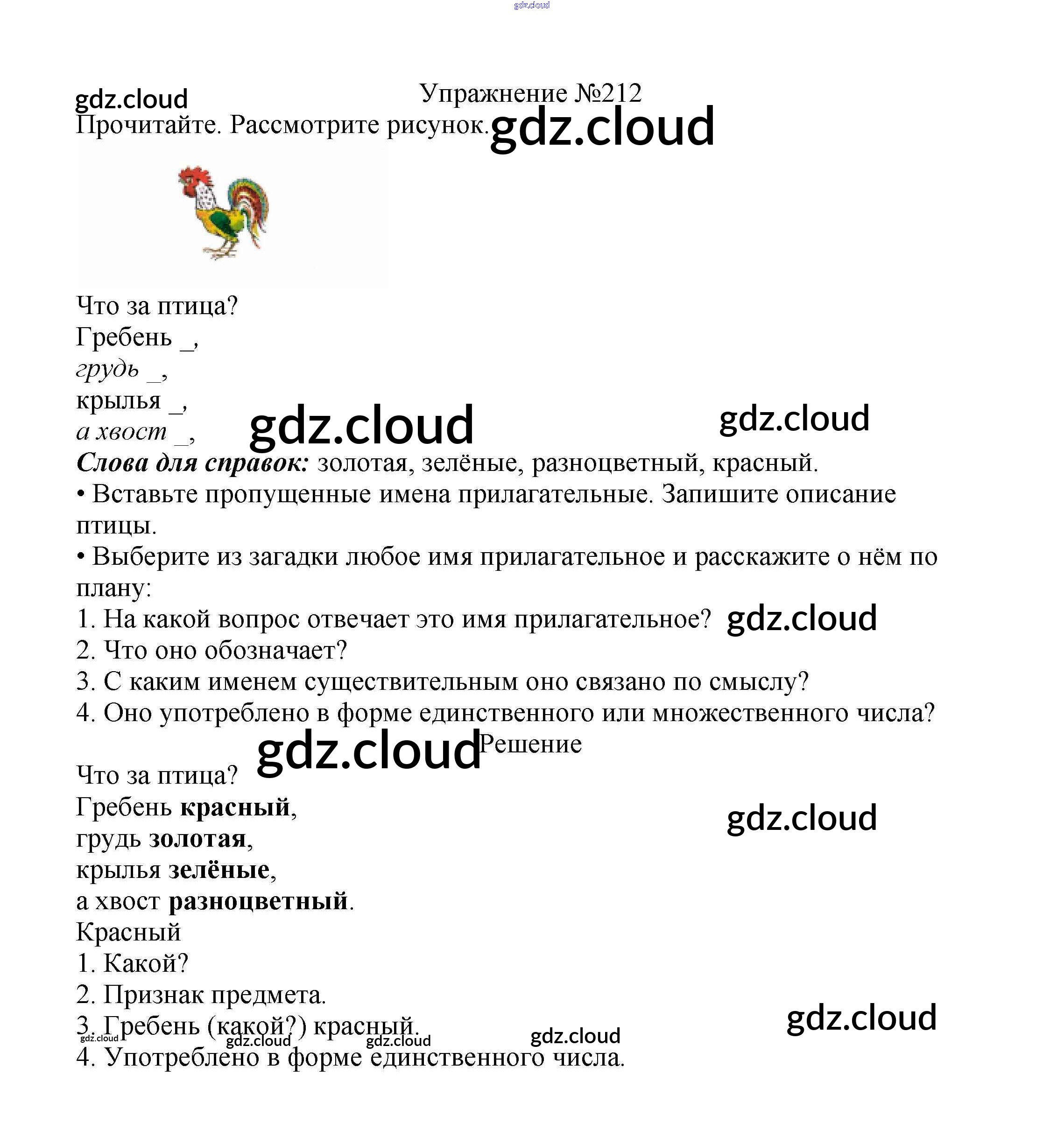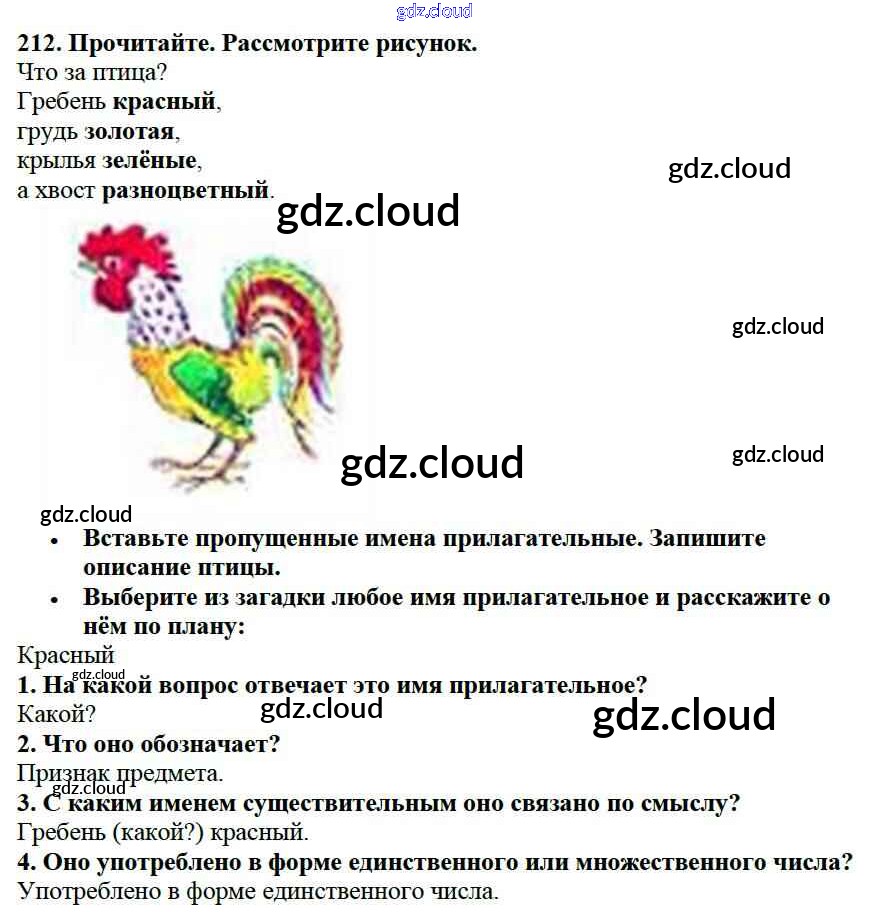 Ответ на задание упр.212 Учебник Русский язык за 2 (второй) класс Канакина, Горецкий Школа России 2013 Часть 1, 2