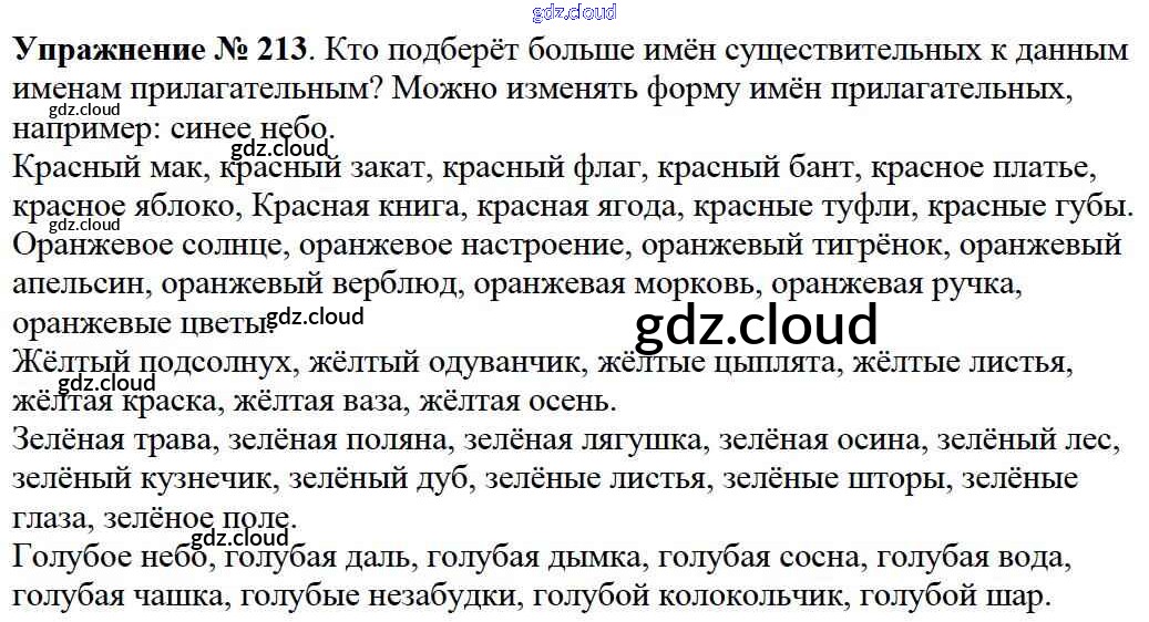 Ответ на задание упр.213 Учебник Русский язык за 2 (второй) класс Канакина, Горецкий Школа России 2013 Часть 1, 2