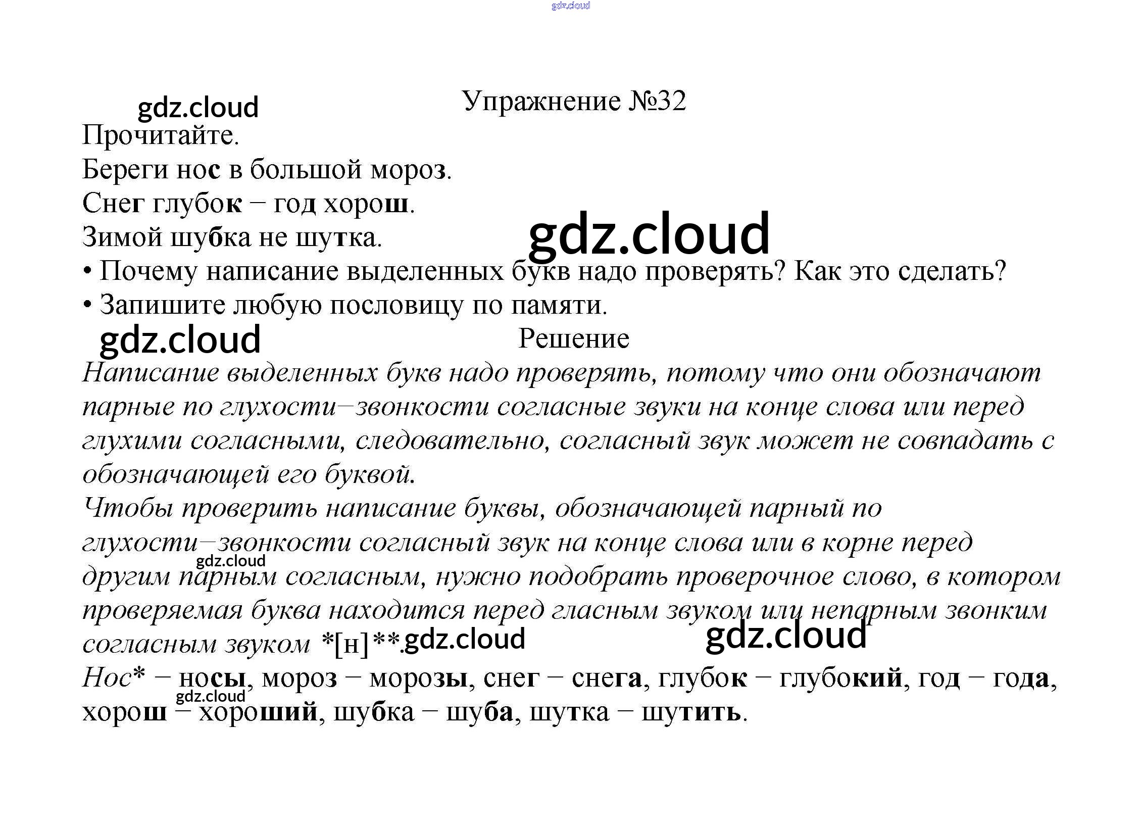 Ответ на задание упр.32 Учебник Русский язык за 2 (второй) класс Канакина, Горецкий Школа России 2013 Часть 1, 2