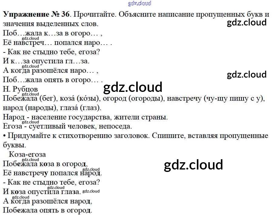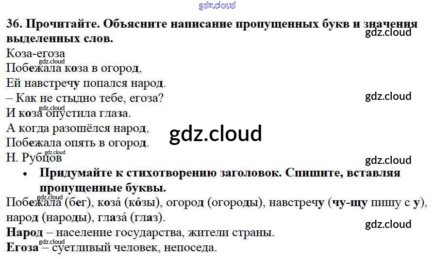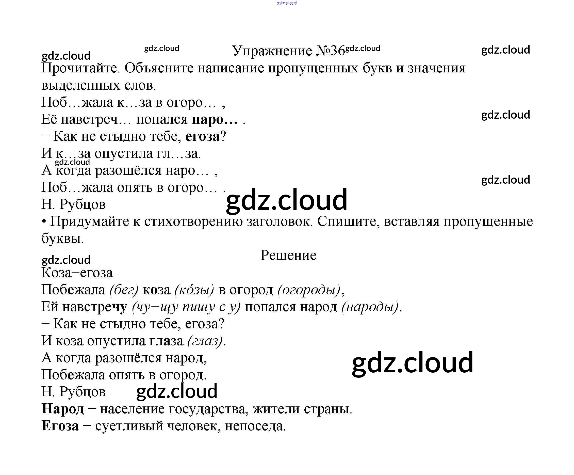 Ответ на задание упр.36 Учебник Русский язык за 2 (второй) класс Канакина, Горецкий Школа России 2013 Часть 1, 2