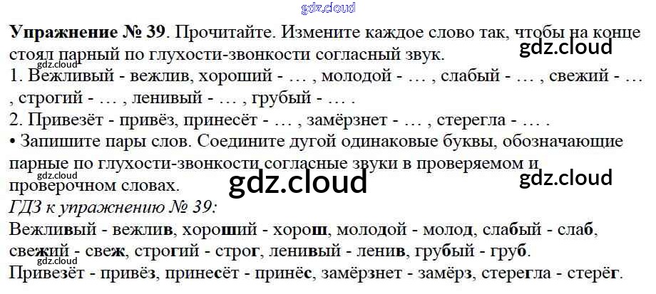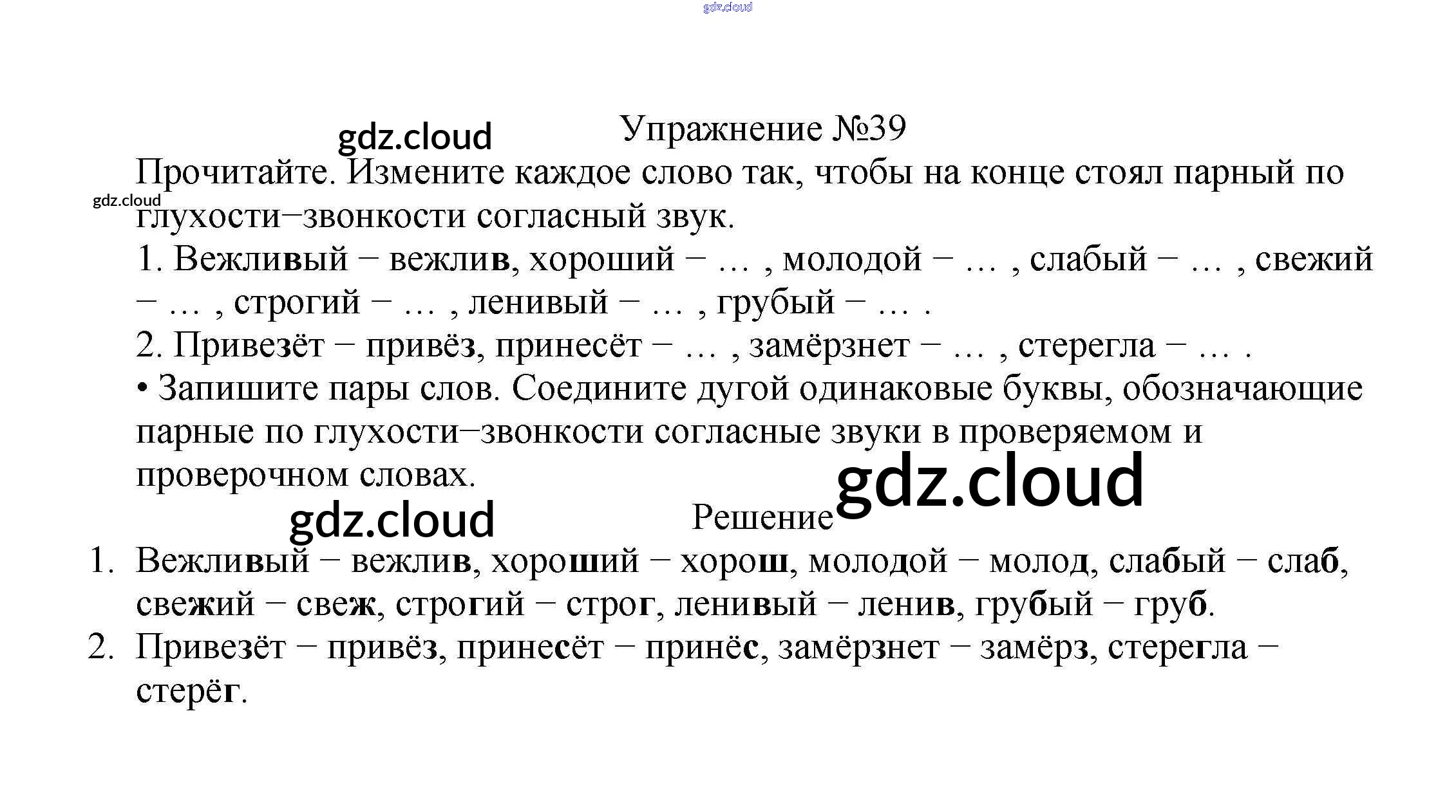 Ответ на задание упр.39 Учебник Русский язык за 2 (второй) класс Канакина, Горецкий Школа России 2013 Часть 1, 2