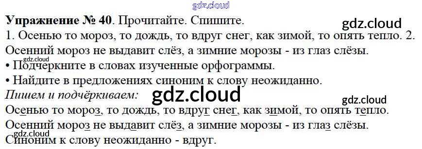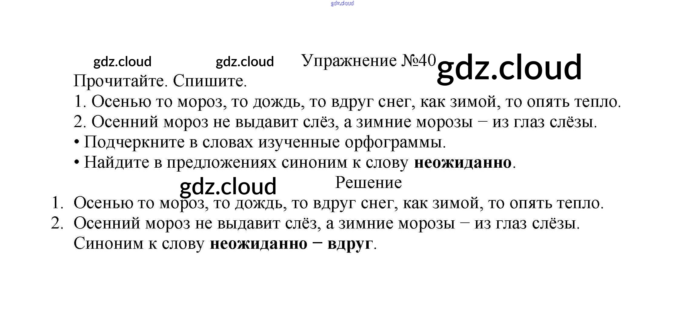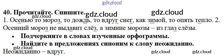 Ответ на задание упр.40 Учебник Русский язык за 2 (второй) класс Канакина, Горецкий Школа России 2013 Часть 1, 2