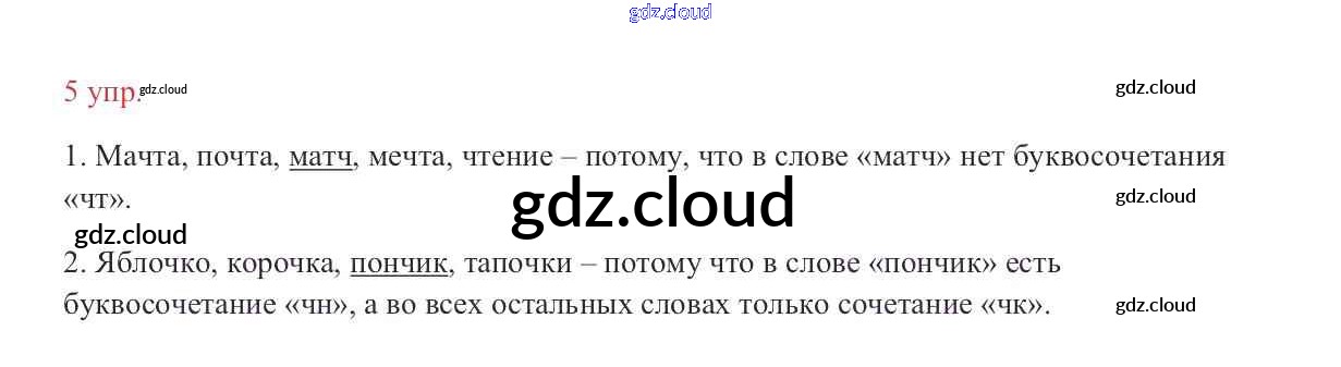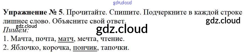 Ответ на задание упр.5 Учебник Русский язык за 2 (второй) класс Канакина, Горецкий Школа России 2013 Часть 1, 2