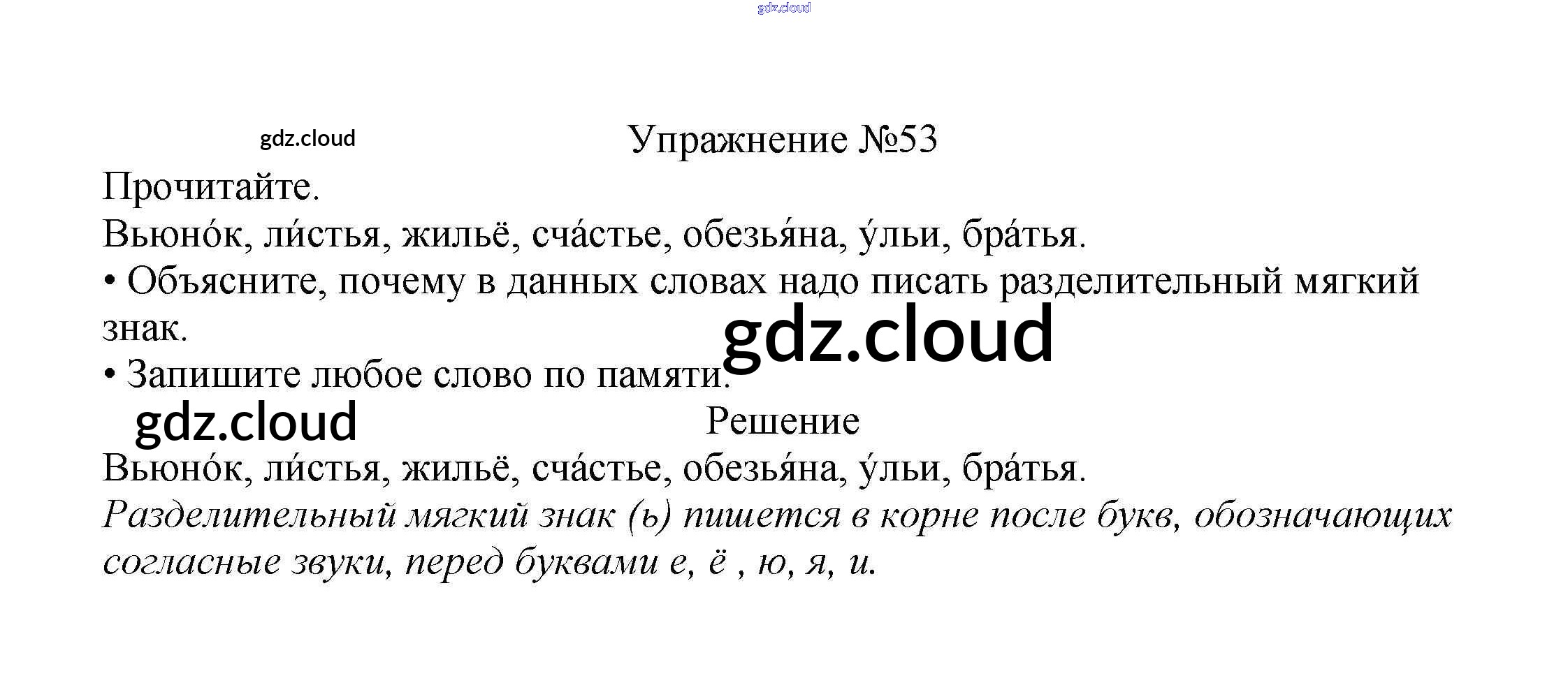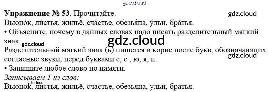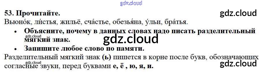 Ответ на задание упр.53 Учебник Русский язык за 2 (второй) класс Канакина, Горецкий Школа России 2013 Часть 1, 2