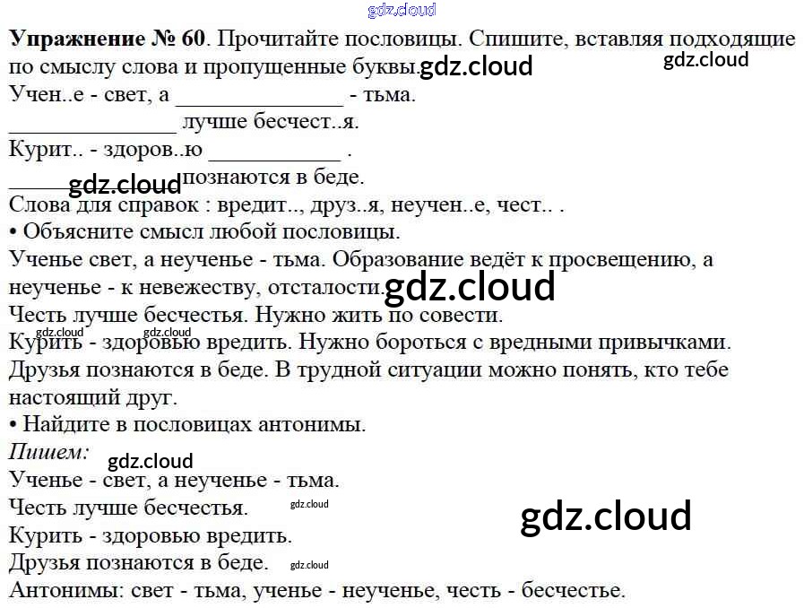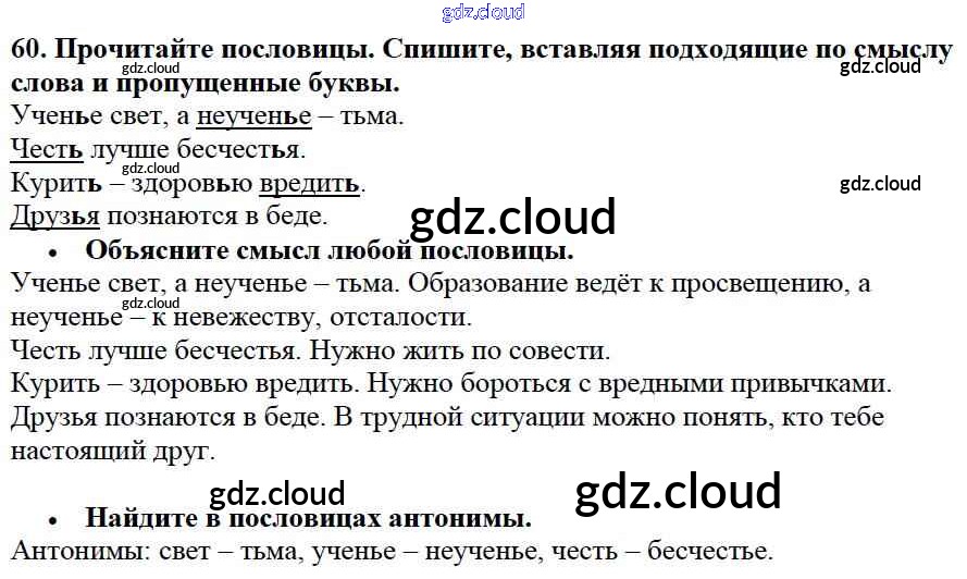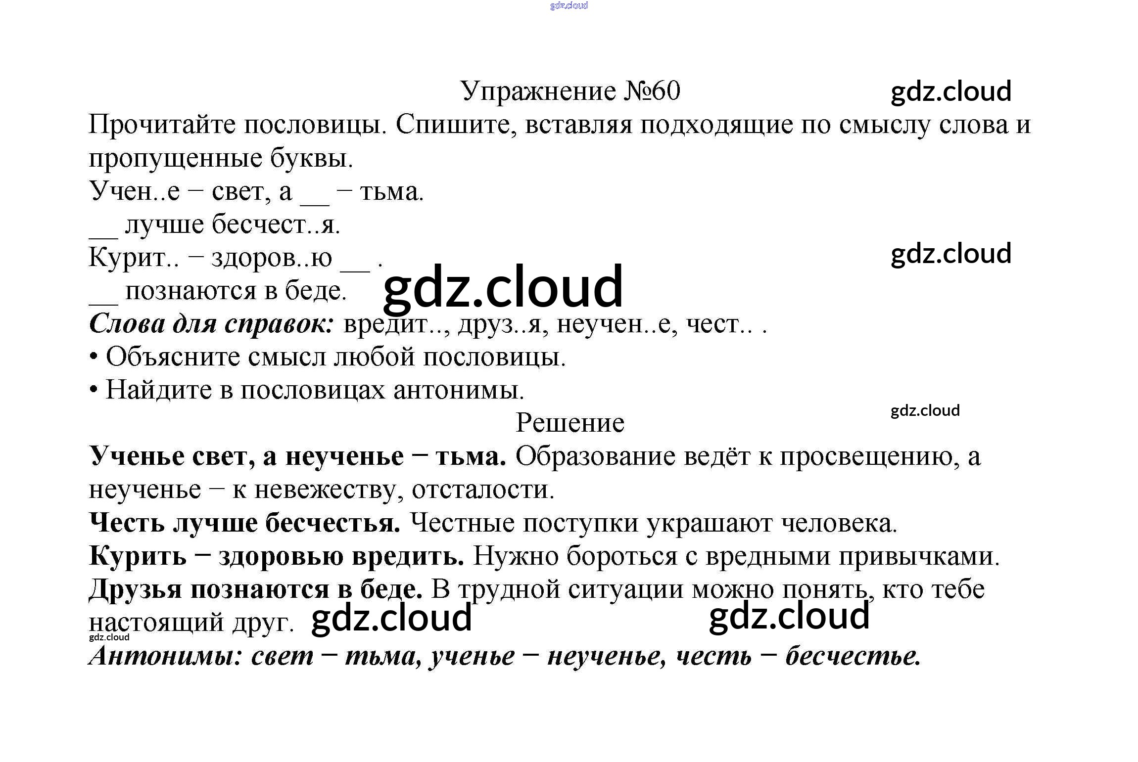 Ответ на задание упр.60 Учебник Русский язык за 2 (второй) класс Канакина, Горецкий Школа России 2013 Часть 1, 2