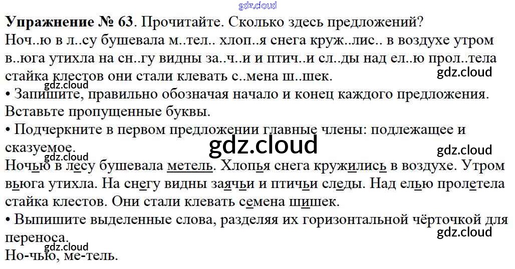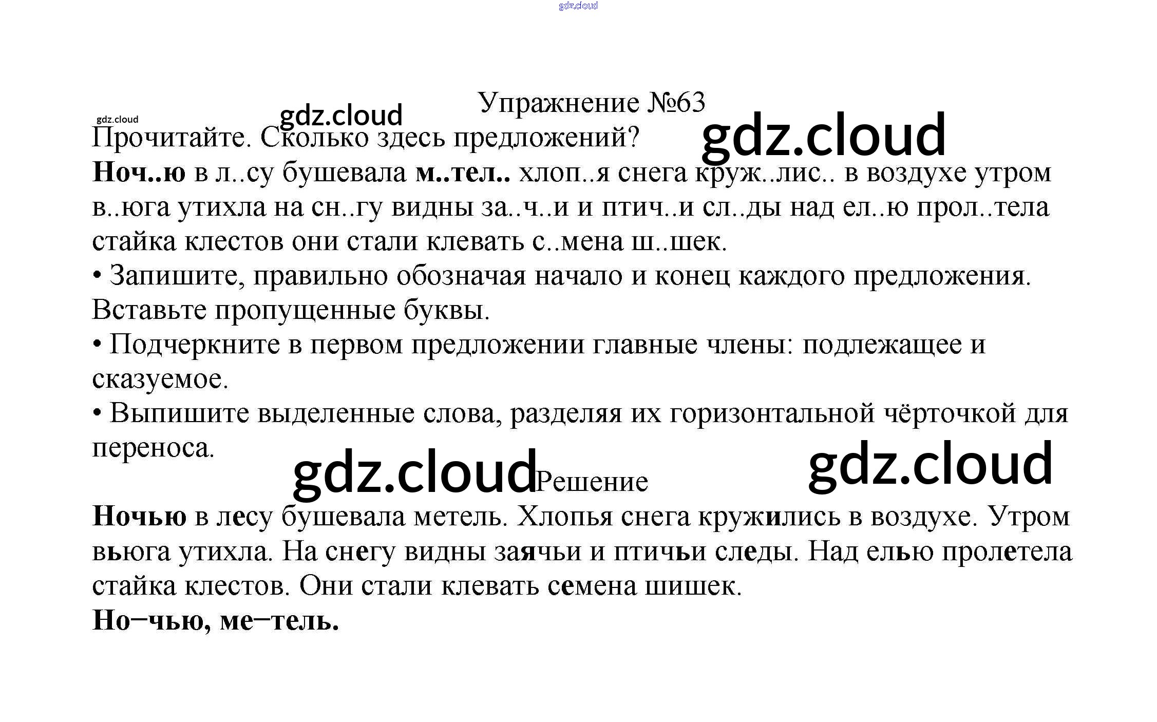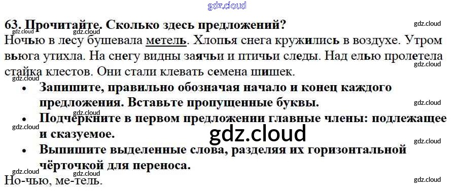Ответ на задание упр.63 Учебник Русский язык за 2 (второй) класс Канакина, Горецкий Школа России 2013 Часть 1, 2
