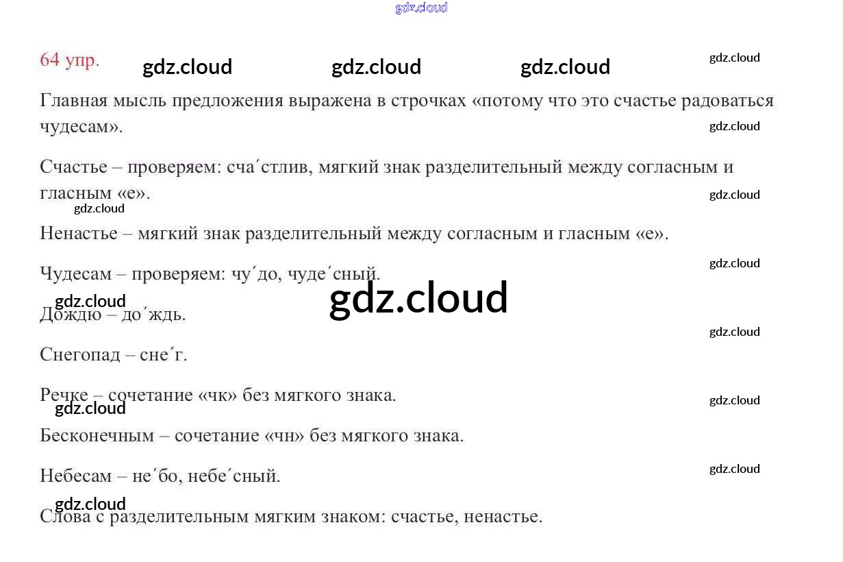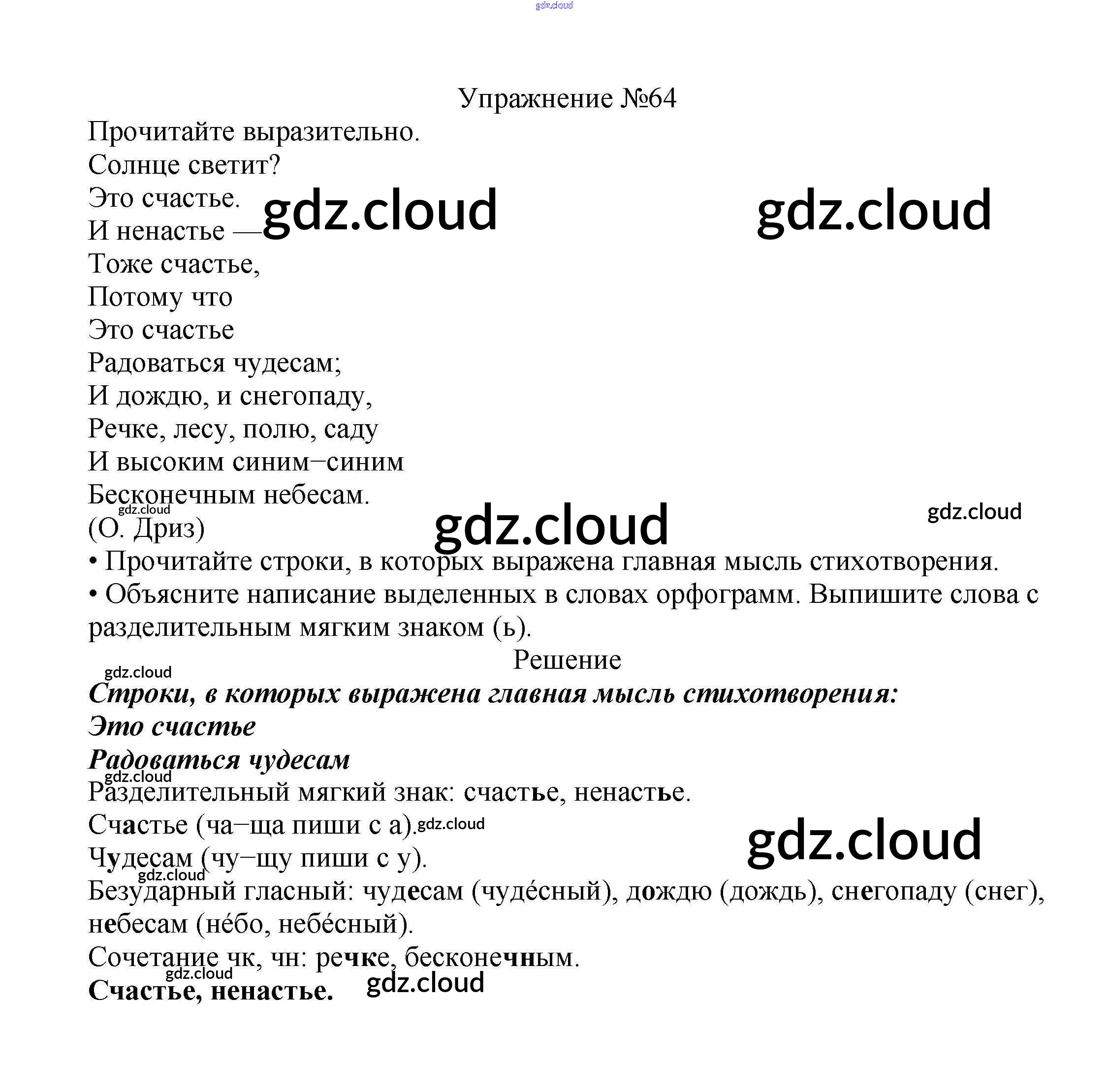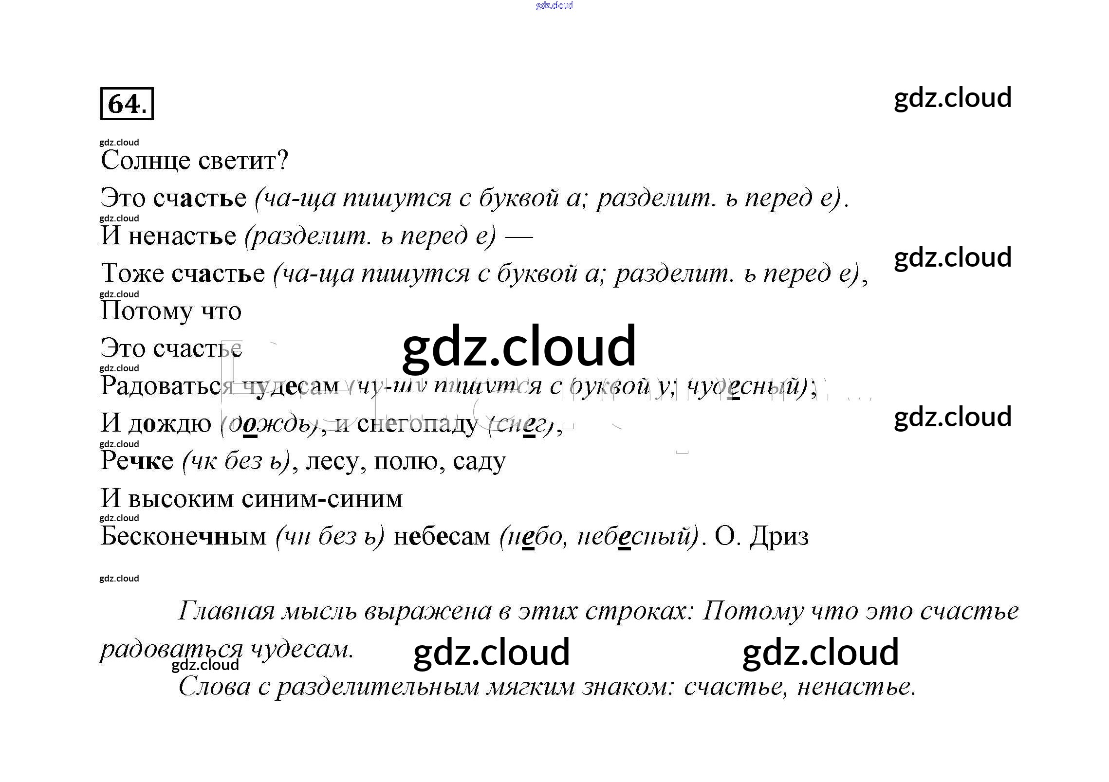 Ответ на задание упр.64 Учебник Русский язык за 2 (второй) класс Канакина, Горецкий Школа России 2013 Часть 1, 2
