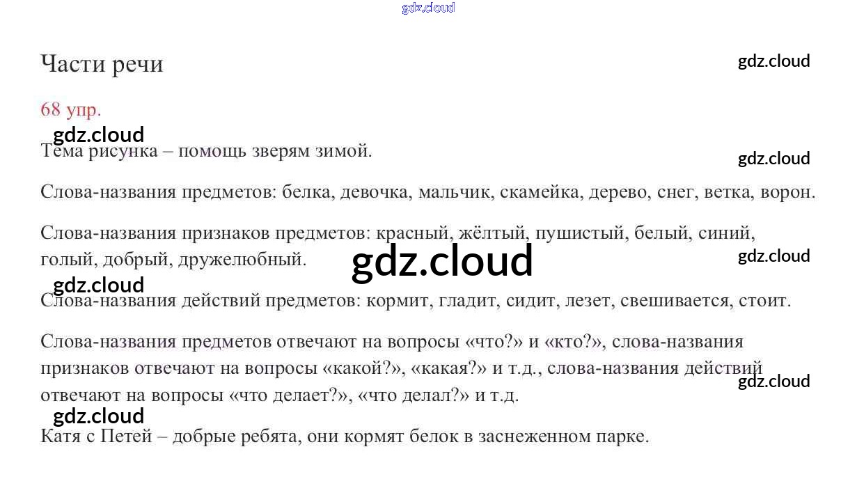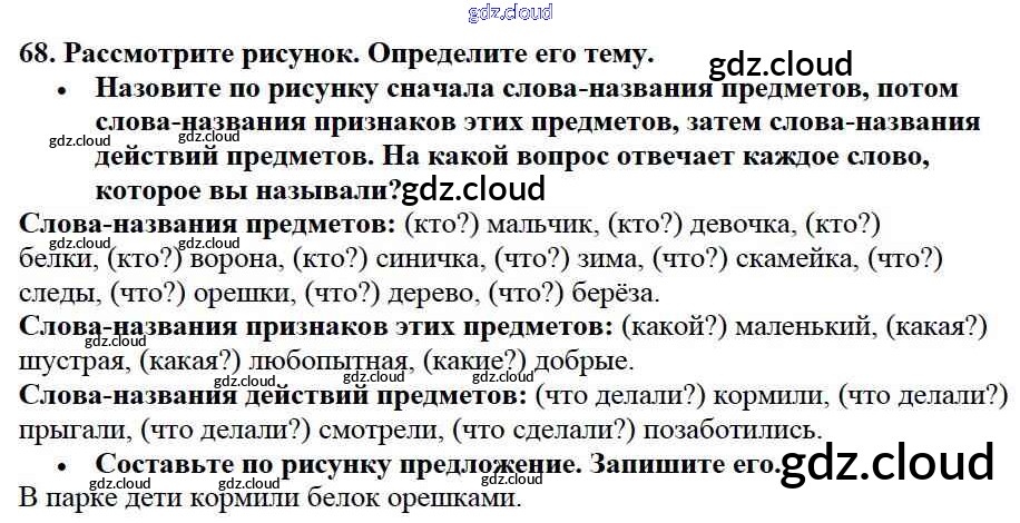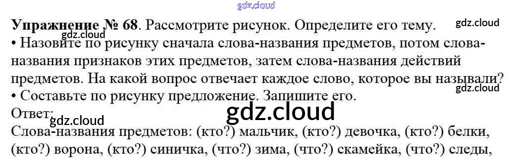 Ответ на задание упр.68 Учебник Русский язык за 2 (второй) класс Канакина, Горецкий Школа России 2013 Часть 1, 2