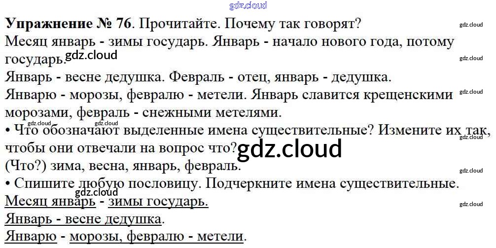 Ответ на задание упр.76 Учебник Русский язык за 2 (второй) класс Канакина, Горецкий Школа России 2013 Часть 1, 2