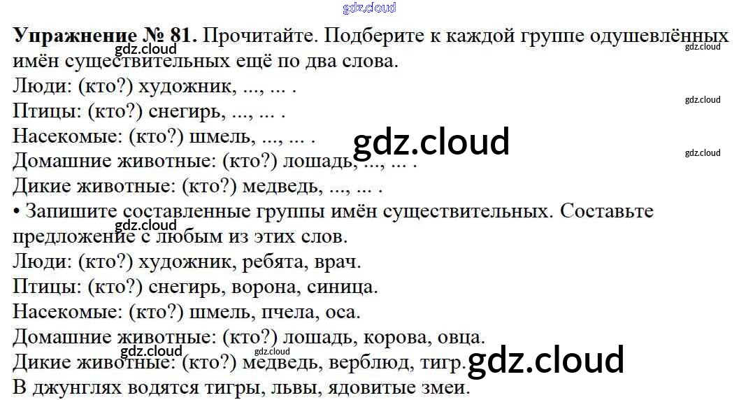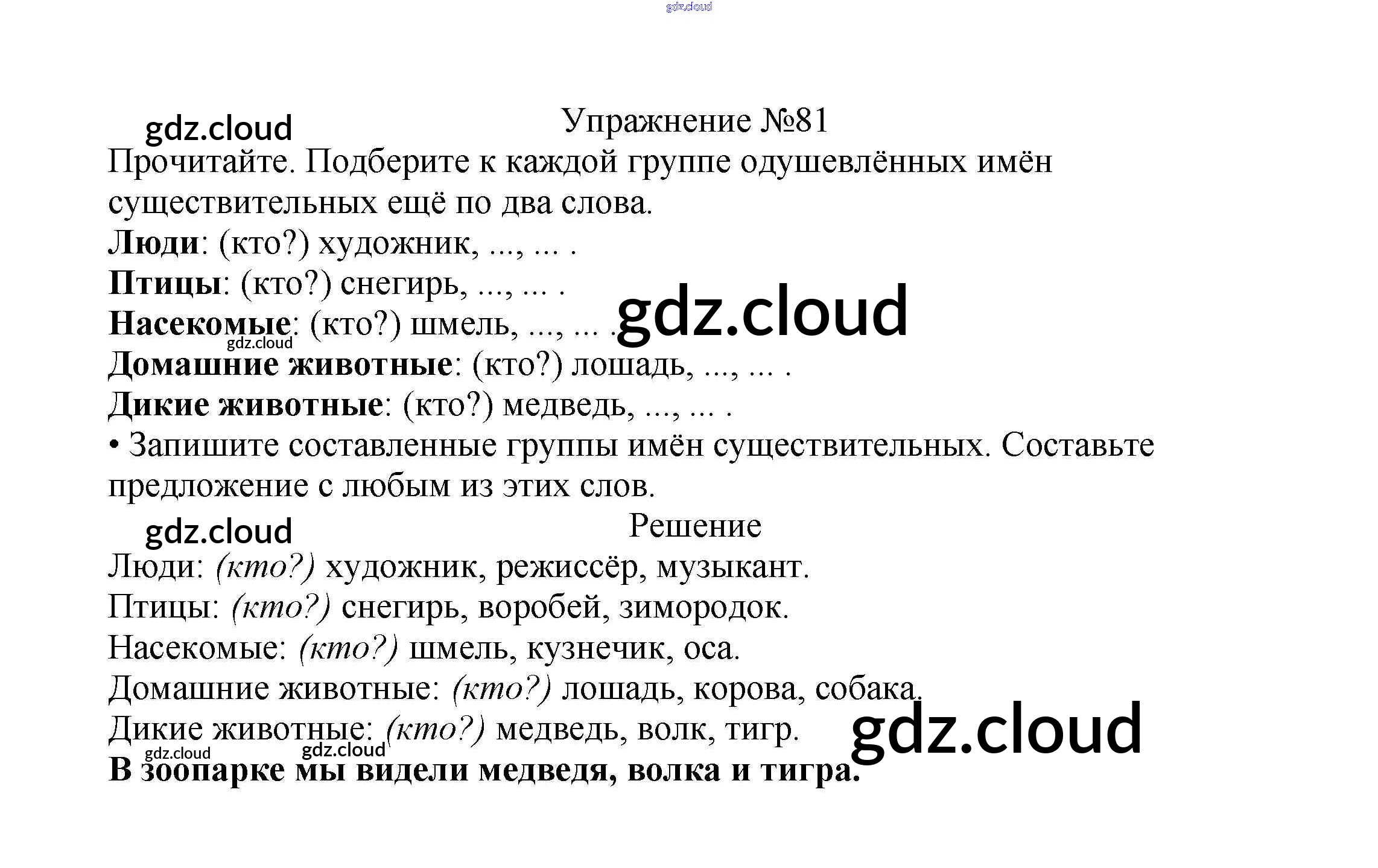 Ответ на задание упр.81 Учебник Русский язык за 2 (второй) класс Канакина, Горецкий Школа России 2013 Часть 1, 2