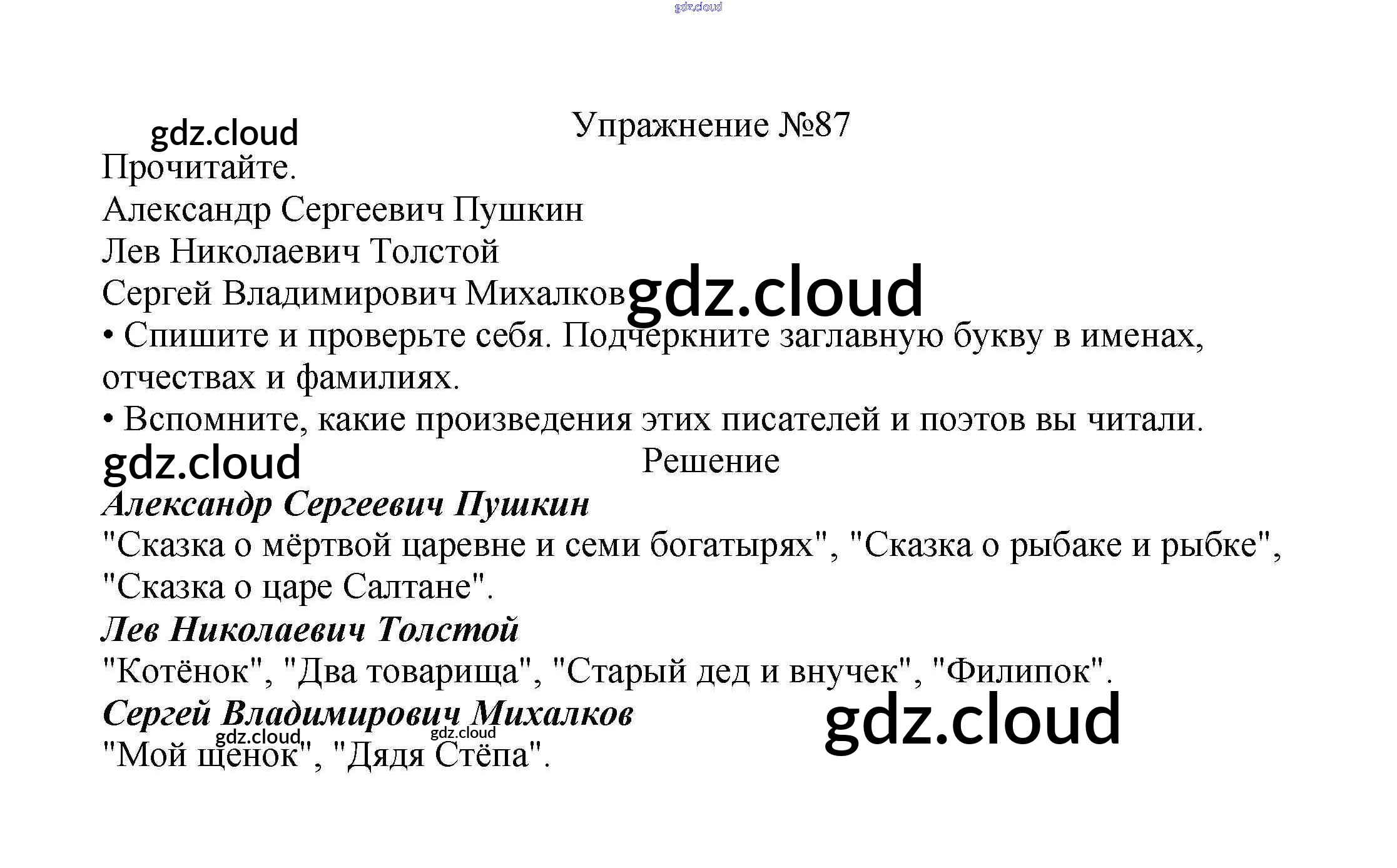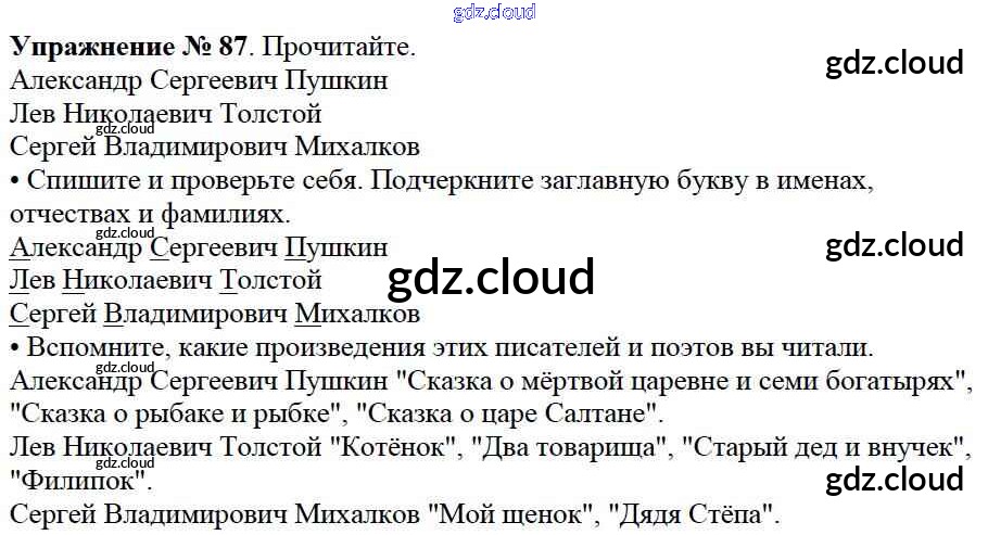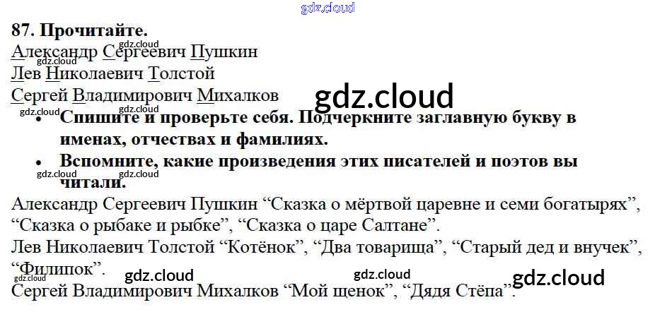 Ответ на задание упр.87 Учебник Русский язык за 2 (второй) класс Канакина, Горецкий Школа России 2013 Часть 1, 2