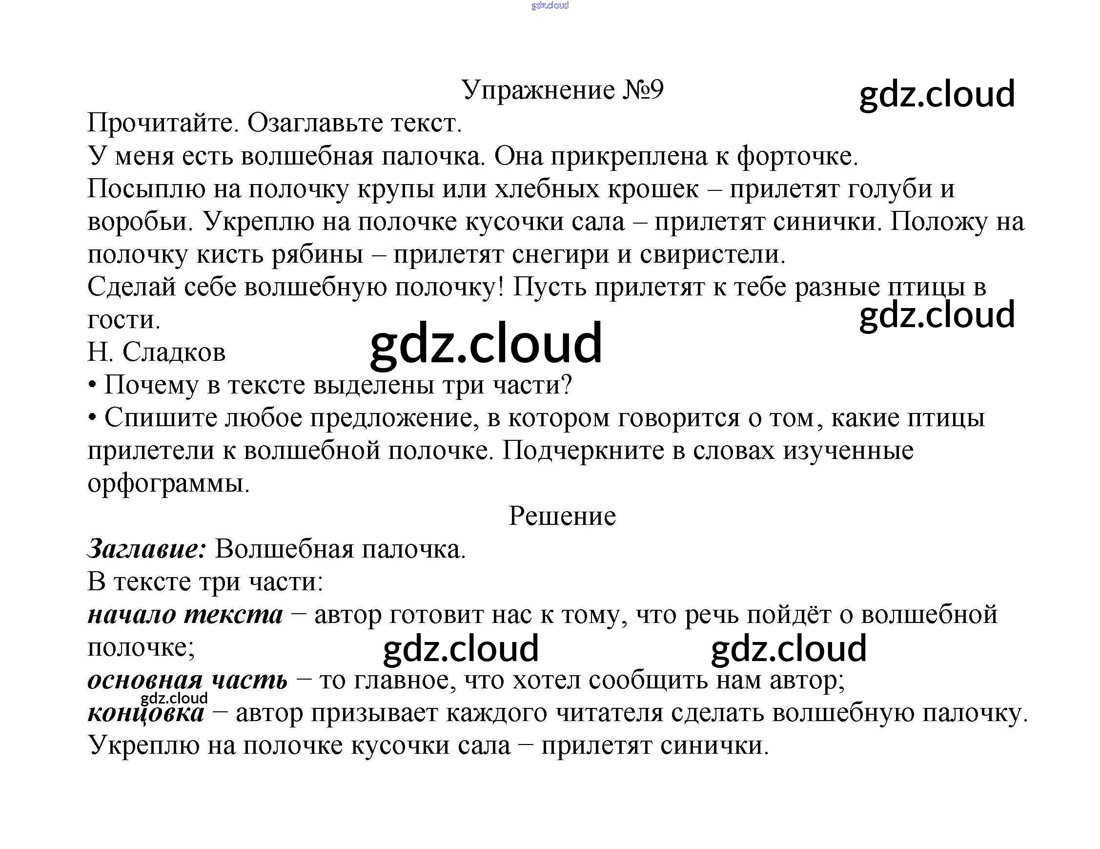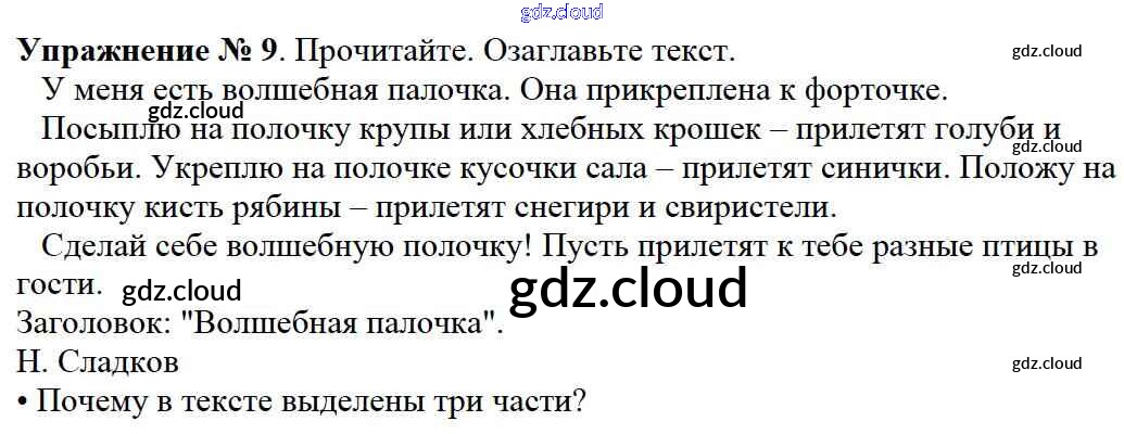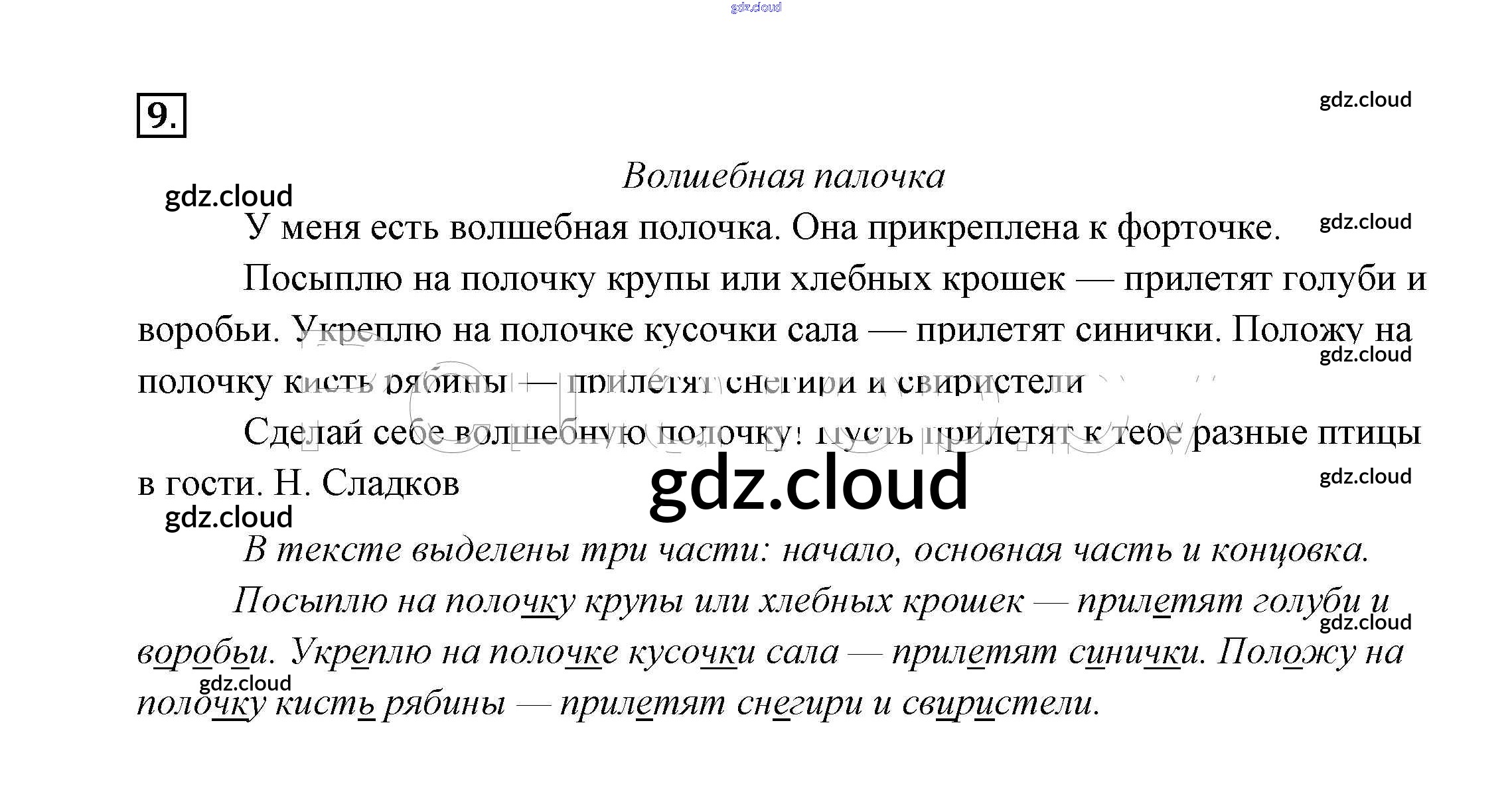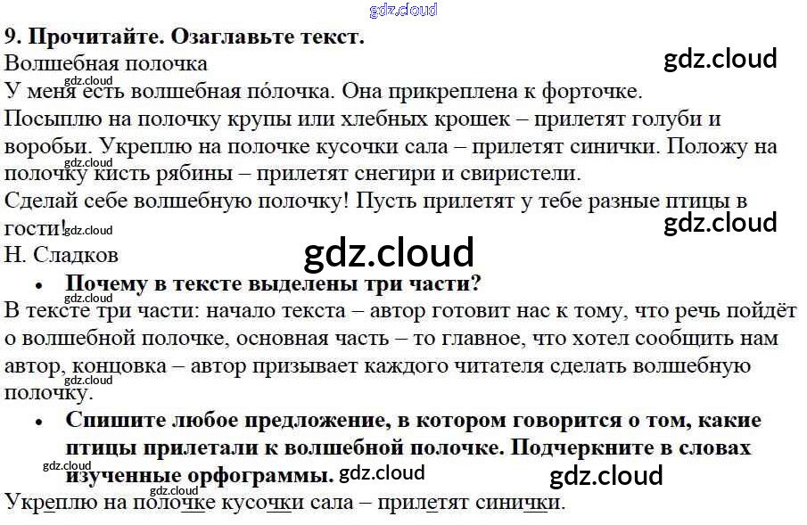 Ответ на задание упр.9 Учебник Русский язык за 2 (второй) класс Канакина, Горецкий Школа России 2013 Часть 1, 2
