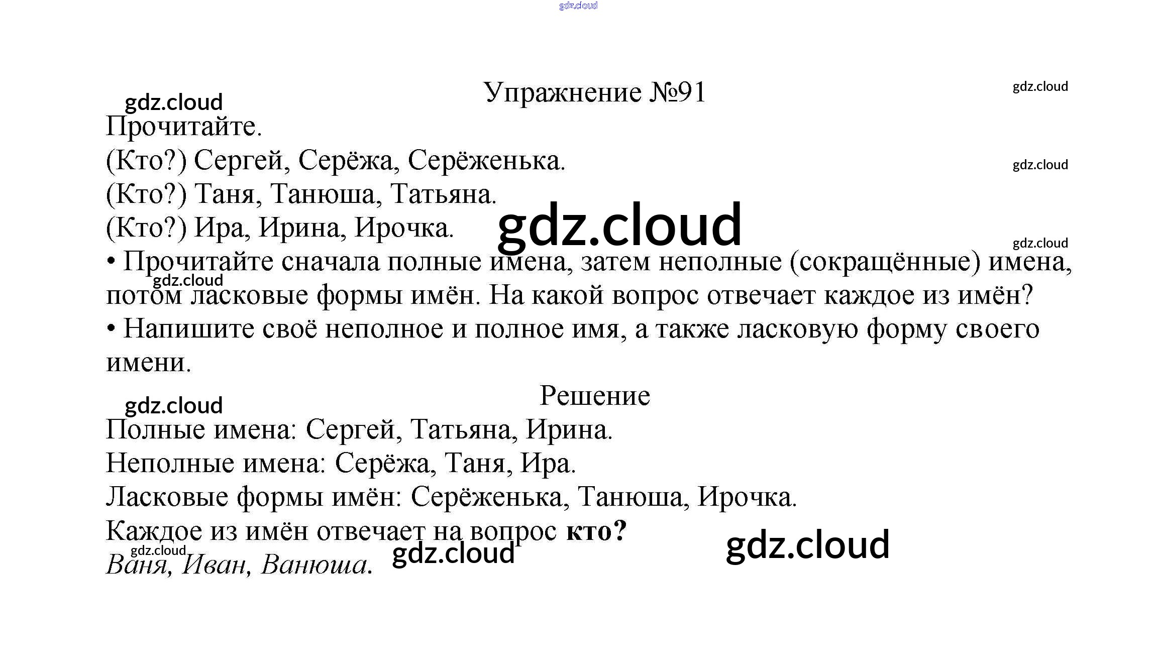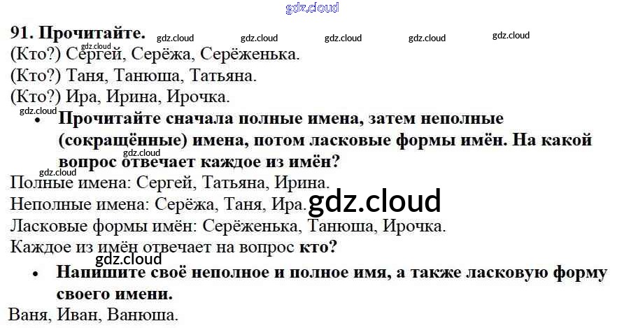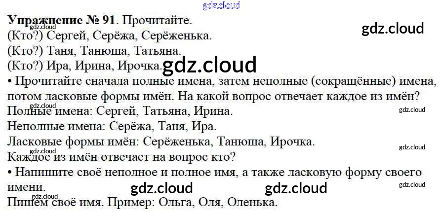 Ответ на задание упр.91 Учебник Русский язык за 2 (второй) класс Канакина, Горецкий Школа России 2013 Часть 1, 2