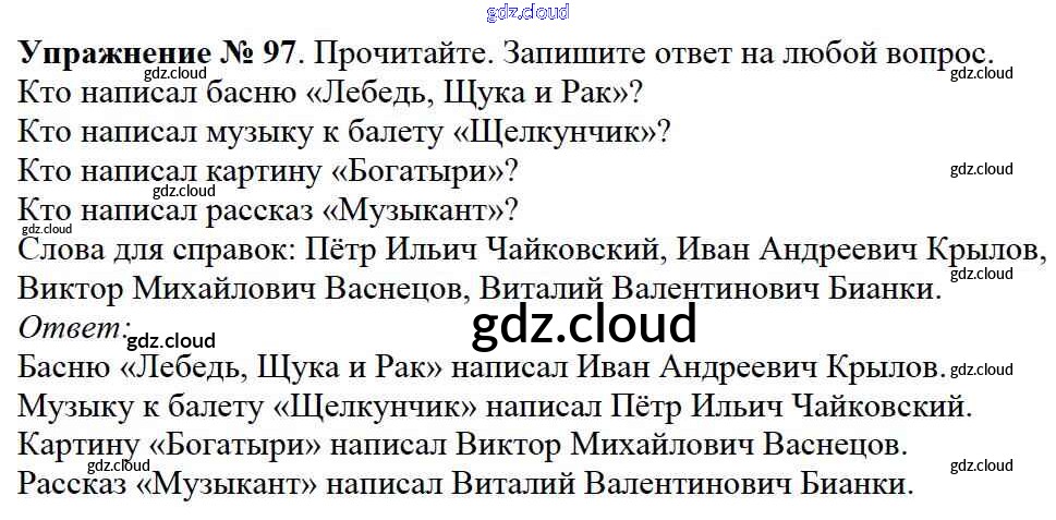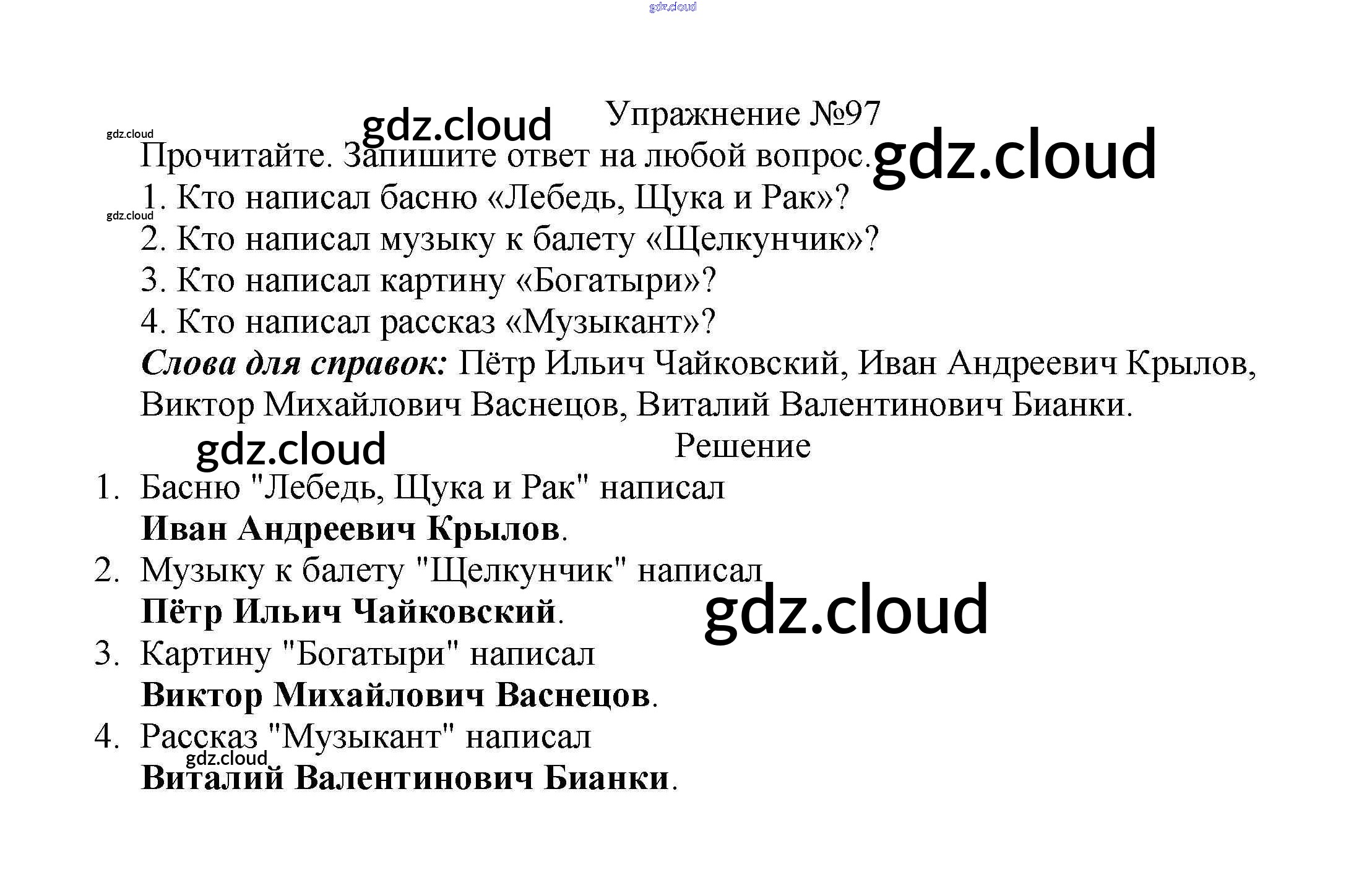 Ответ на задание упр.97 Учебник Русский язык за 2 (второй) класс Канакина, Горецкий Школа России 2013 Часть 1, 2