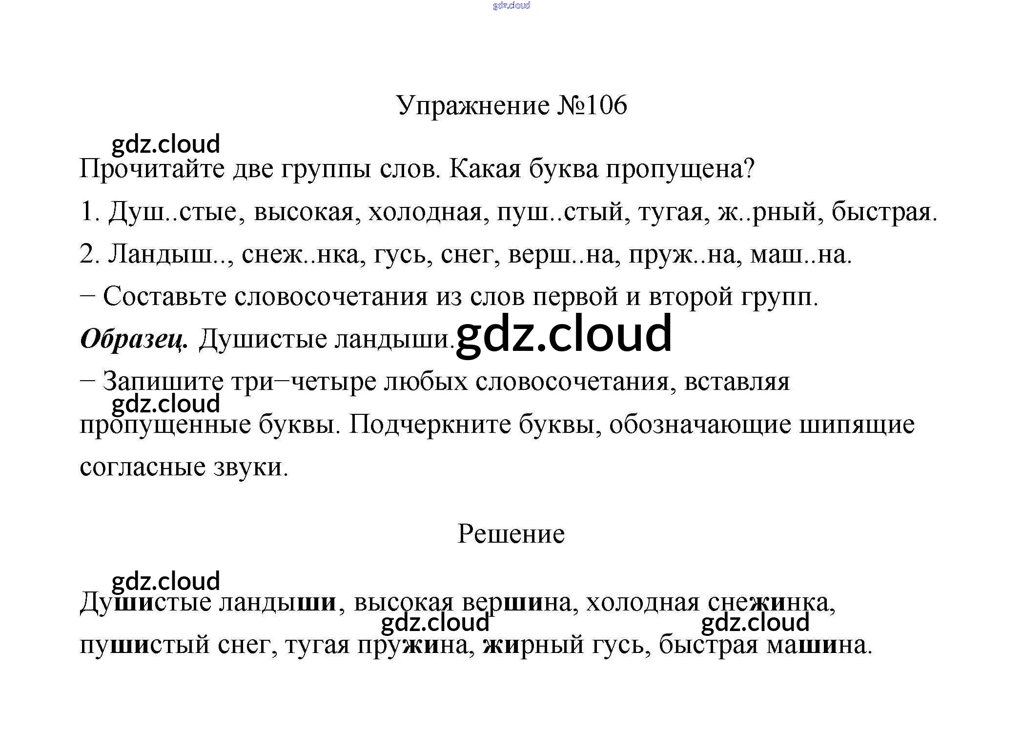 Ответ на задание 106 Учебник Русский язык за 2 (второй) класс Климанова, Бабушкина Перспектива 2015, 2020 Часть 1, 2