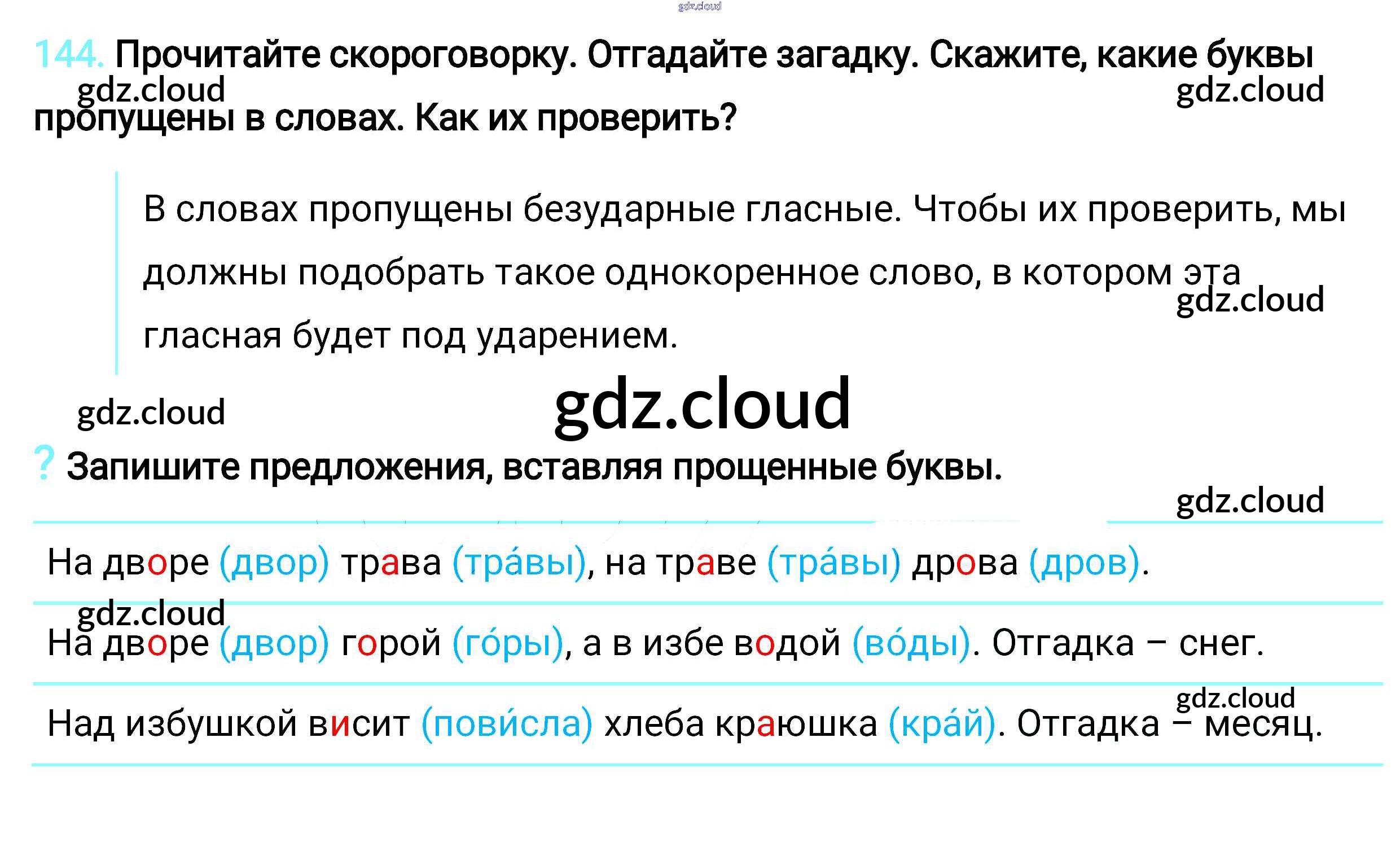 Ответ на задание 144 Учебник Русский язык за 2 (второй) класс Климанова, Бабушкина Перспектива 2015, 2020 Часть 1, 2