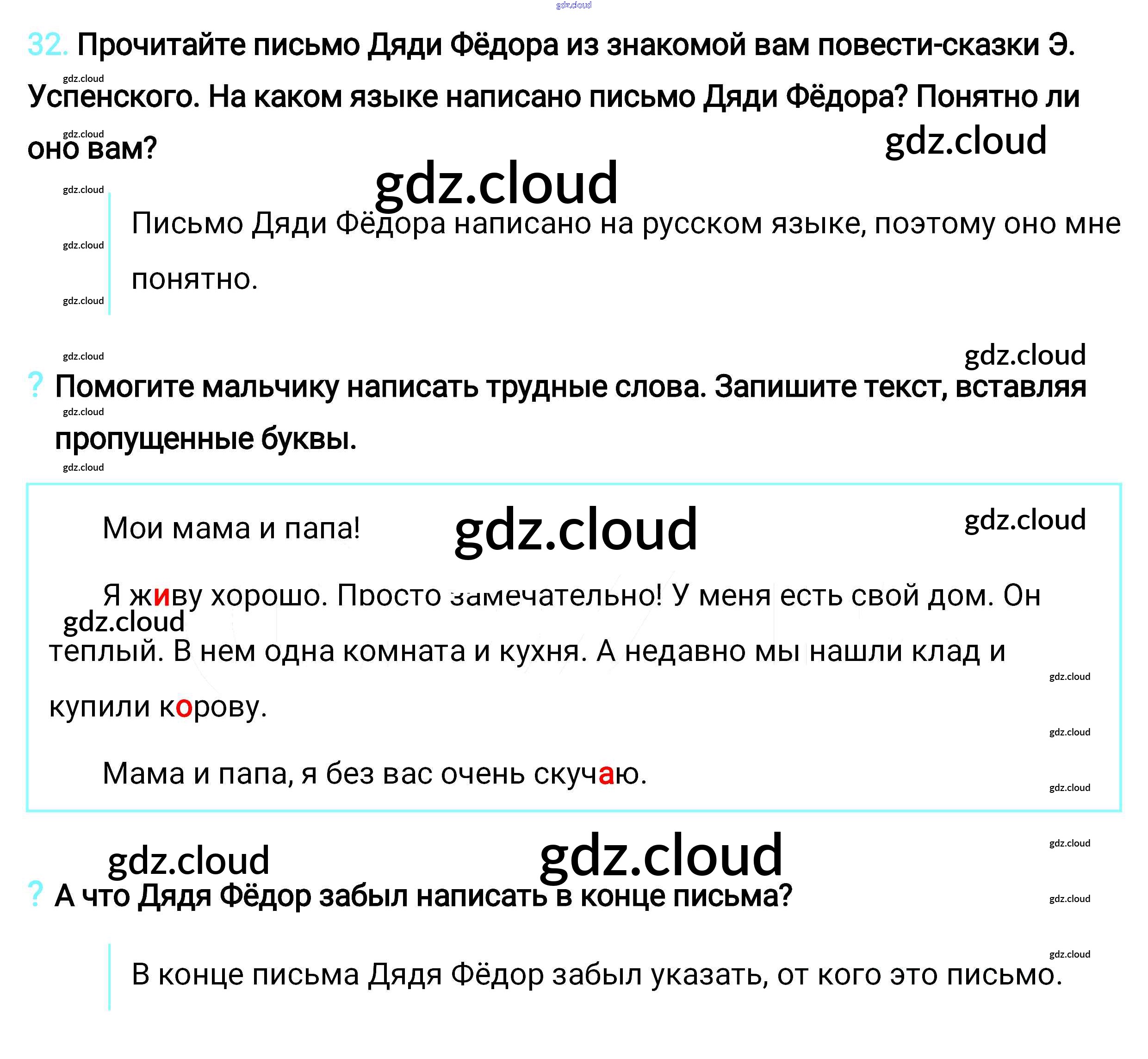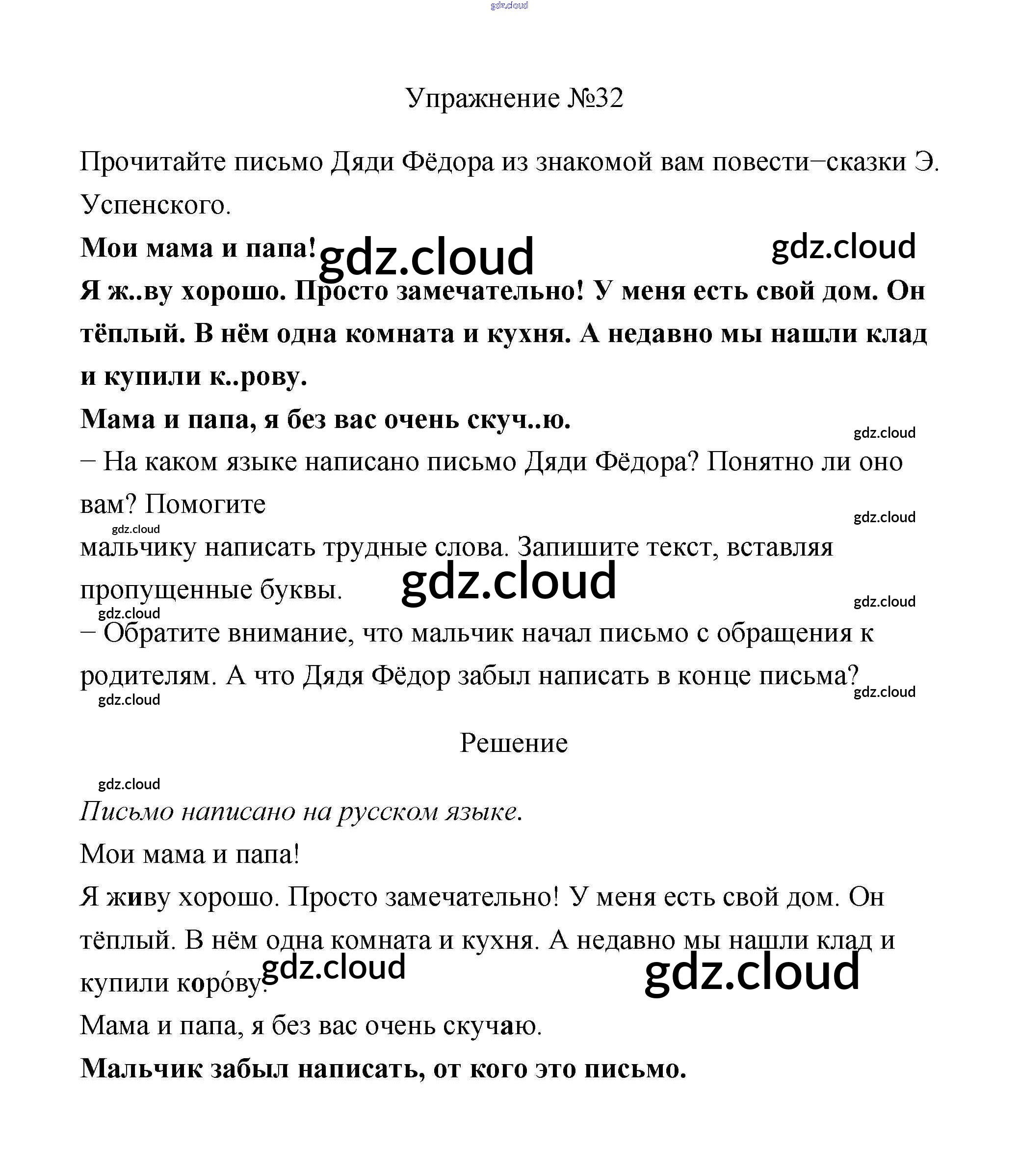 Ответ на задание 32 Учебник Русский язык за 2 (второй) класс Климанова, Бабушкина Перспектива 2015, 2020 Часть 1, 2