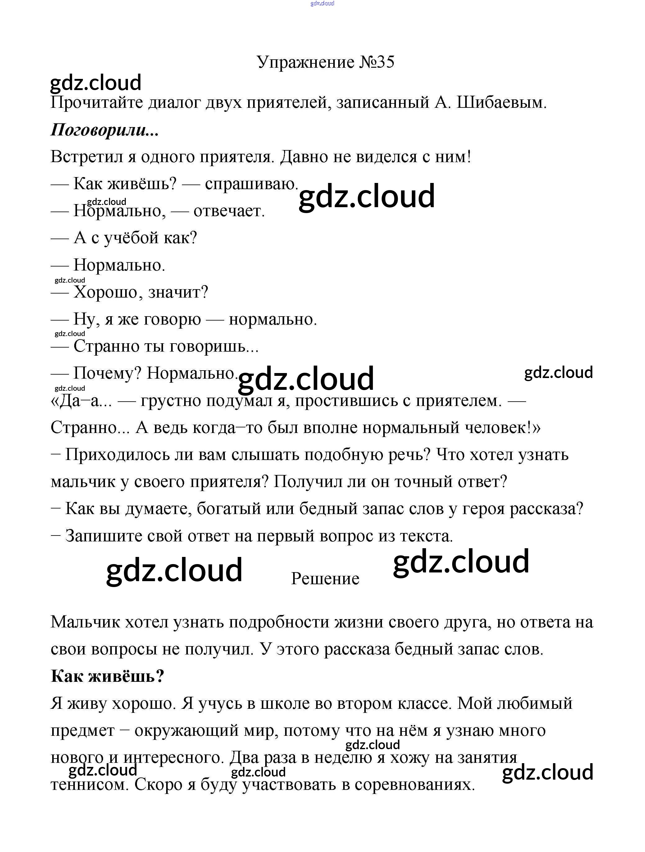 Ответ на задание 35 Учебник Русский язык за 2 (второй) класс Климанова, Бабушкина Перспектива 2015, 2020 Часть 1, 2